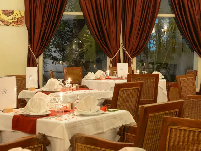V rámci služieb all inclusive sú podávané raňajky od 7:00 do 10:00, obedy od 12:30 do 14:00 a večere od 19:00 do 21:00 formou bufetu. Počas pobytu je možné využiť aj jednu večeru v reštaurácii à la carte (rezervácia je potrebná). Menšie občerstvenie je dostupné cez deň od 10:00 do 23:00 a hostia môžu neobmedzene konzumovať vybrané nealkoholické a alkoholické nápoje.