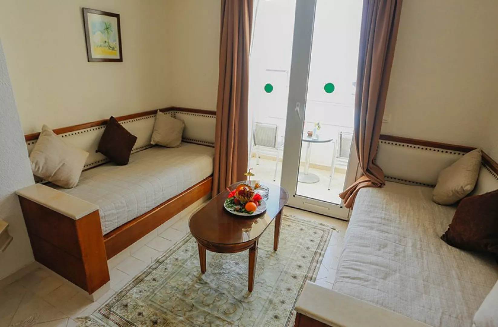 Areál hotela disponuje vstupnou halou s recepciou, hlavnou reštauráciou a niekoľkými barmi, vrátane lobby baru, pool baru, plážového baru (otvorený iba počas hlavnej sezóny), snack baru a tradičnej maurskej kaviarne. V hoteli sa nachádza nočný klub, kde je konzumácia spoplatnená. Wi-Fi je dostupné vo verejných priestoroch zdarma. K zázemiu patrí vonkajší bazén s oddelenou časťou pre deti (ležadlá a slnečníky sú zdarma) a vnútorný bazén, ktorý je otvorený mimo hlavnej sezóny. Pre návštevníkov je k dispozícii obchod so suvenírmi a ponuka športových aktivít, ako sú animácie, večerné programy, volejbal, basketbal, stolný tenis a tenis (osvetlenie za poplatok). K dispozícii je aj minigolf a detský klub pre deti od 4 do 12 rokov. Za príplatok si môžu vychutnať procedúry v thalasso centre, vrátane balneoterapie, hammamu, jacuzzi, masáží, kozmetických procedúr a kaderníctva, ako aj biliard a vodné športy na pláži (kajak) a golf (cca 6 km).