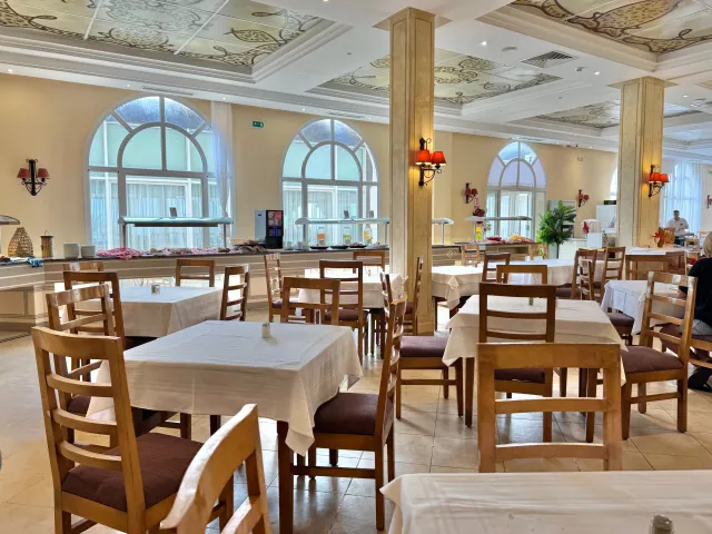 Hotel ponúka stravovanie formou all inclusive, ktoré zahŕňa raňajky (7:00-10:00), obedy (12:30-14:30) a večere (19:30-21:30) vo forme bufetu. Počas dňa sú k dispozícii menšie snacky a neobmedzené množstvo vybraných nealkoholických a alkoholických nápojov od 10:00 do 00:00.