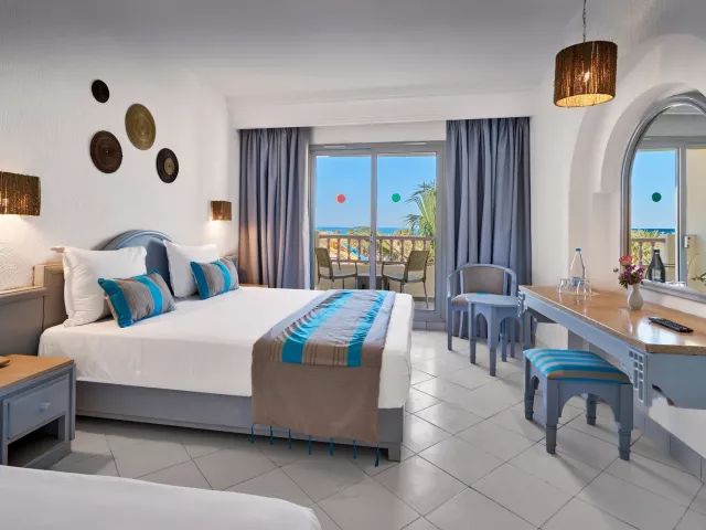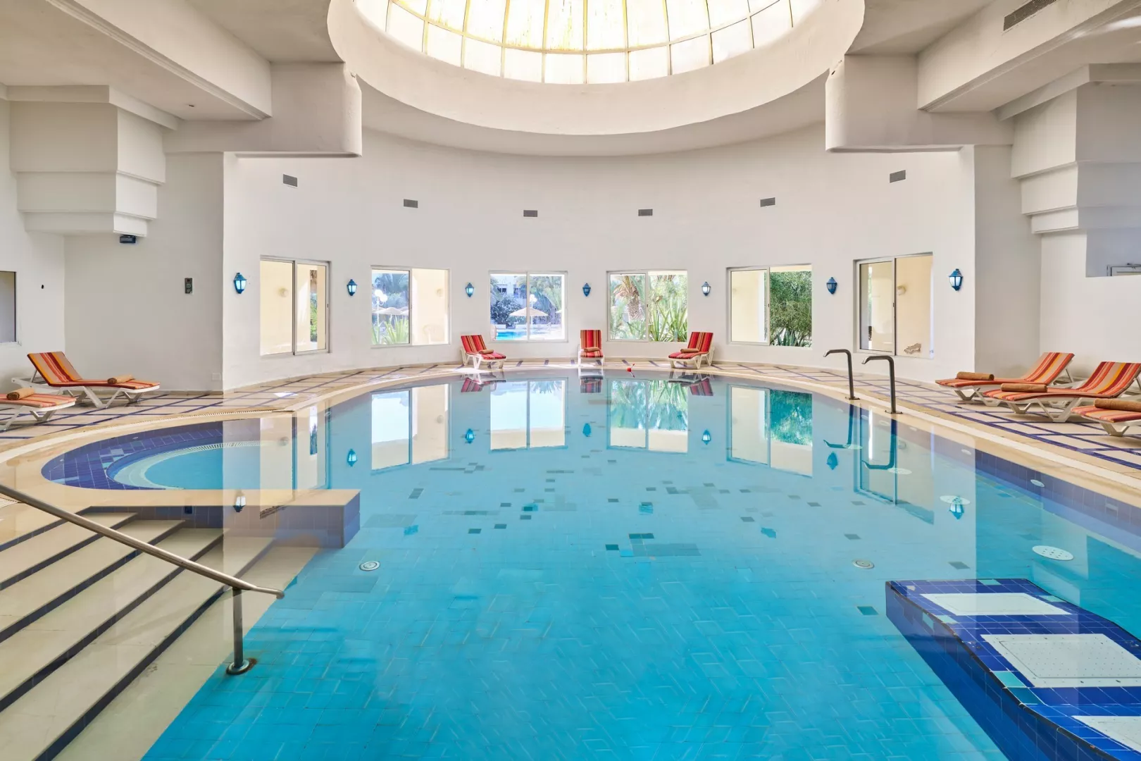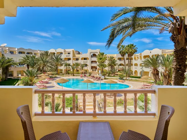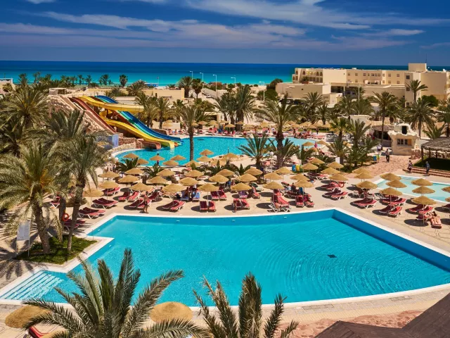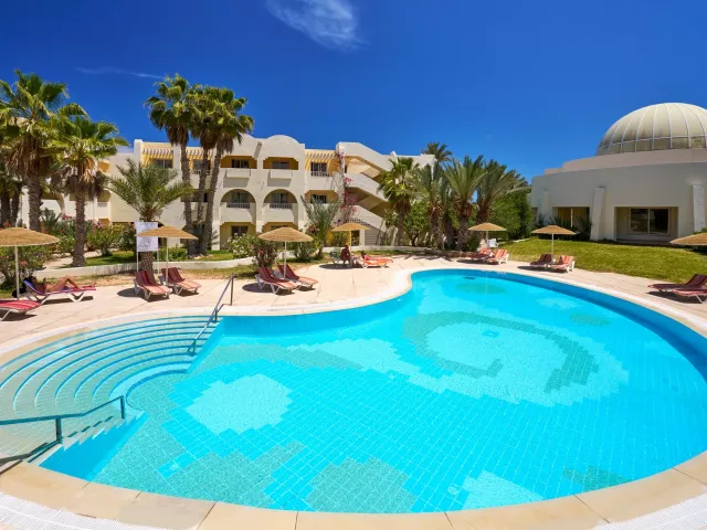 Tunisko / Djerba / Midoun. Príjemný rozsiahly rezort sa skladá zo 374 izieb rozdelených do hlavnej budovy a thalasso časti a je postavený v arabsko-andalúzskom štýle. Komplex je situovaný v tesnej blízkosti nádhernej pláže s jemným zlatistým pieskom, na ktorú sa dostanete cez promenádu alebo okolo sesterského hotela Hacienda. Hotel s kvalitnými službami a vlastným wellness centrom je ideálnym miestom pre strávenie nezabudnuteľnej dovolenky. Vďaka bohatému športovému vyžitiu hotel odporúčame milovníkom aktívnej dovolenky, ale aj rodinám s deťmi. Pre nadšencov golfu je neďaleko hotela k dispozícií 27-jamkové golfové ihrisko.