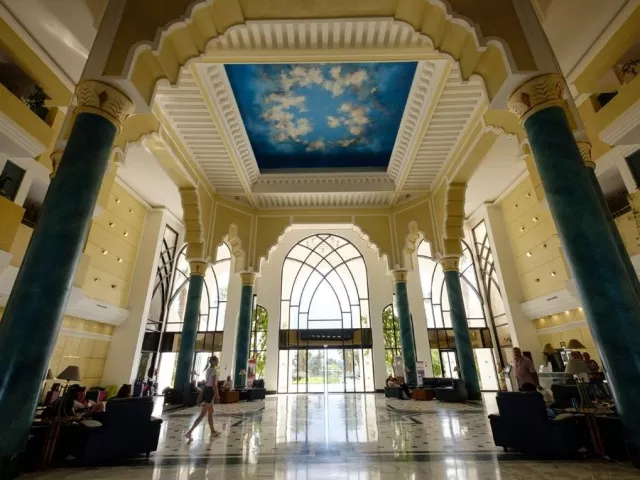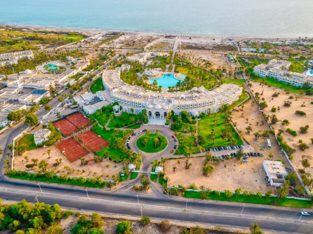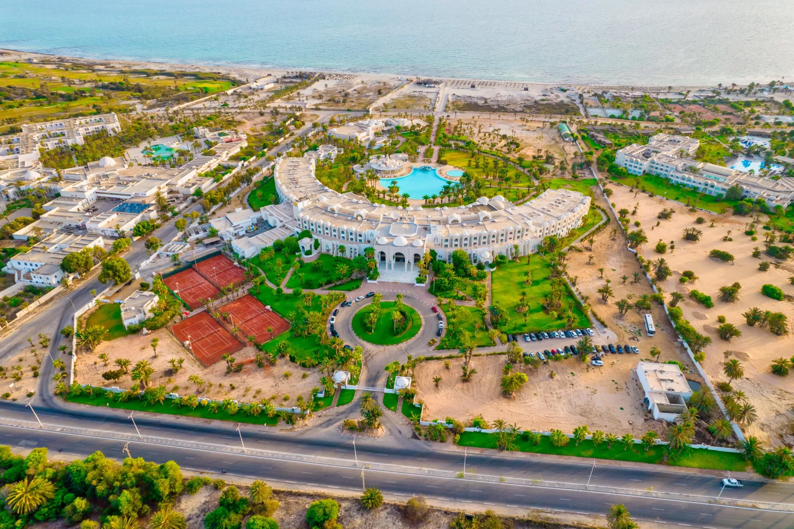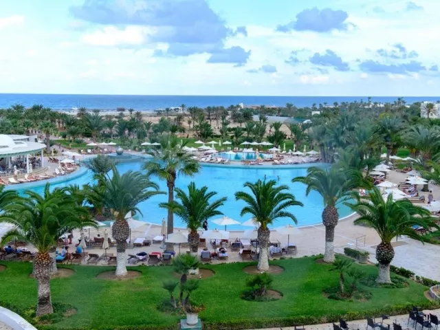 V pokojnom mieste turistickej zóny Midoune, v blízkosti 27 jamkového ihriska, uprostred sviežej 14 hektárovej palmovej záhrady, postavený v tvare polmesiaca as výhľadom na pláž, stojí hotel Royal Garden Palace. Na pláž s jemným pieskom vedie cesta hotelovým komplexom. Svojimi službami na vysokej úrovni uspokojí potreby aj veľmi náročného klienta. Hotel je vhodný pre strávenie pokojnej dovolenky. Upozornenie : Rozsah a kvalita uvedených služieb a aktivít môže byť ovplyvnená zavedením prípadných hygienických či protiepidemických opatrení v danej destinácii.