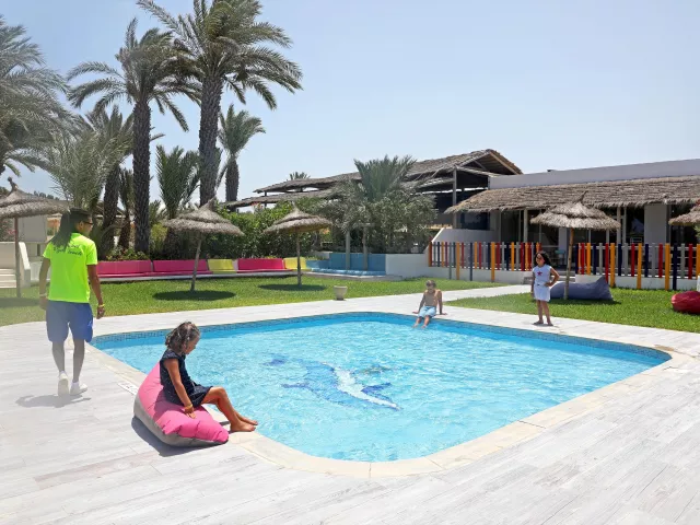 Seabel Rym Beach sa nachádza v atraktívnej lokalite priamo pri pláži, len niekoľko krokov od romantických a malebných scenérií Djerby. Okolie je bohaté na kultúrne a historické pamiatky, ideálne na objavovanie a aktívny oddych.
