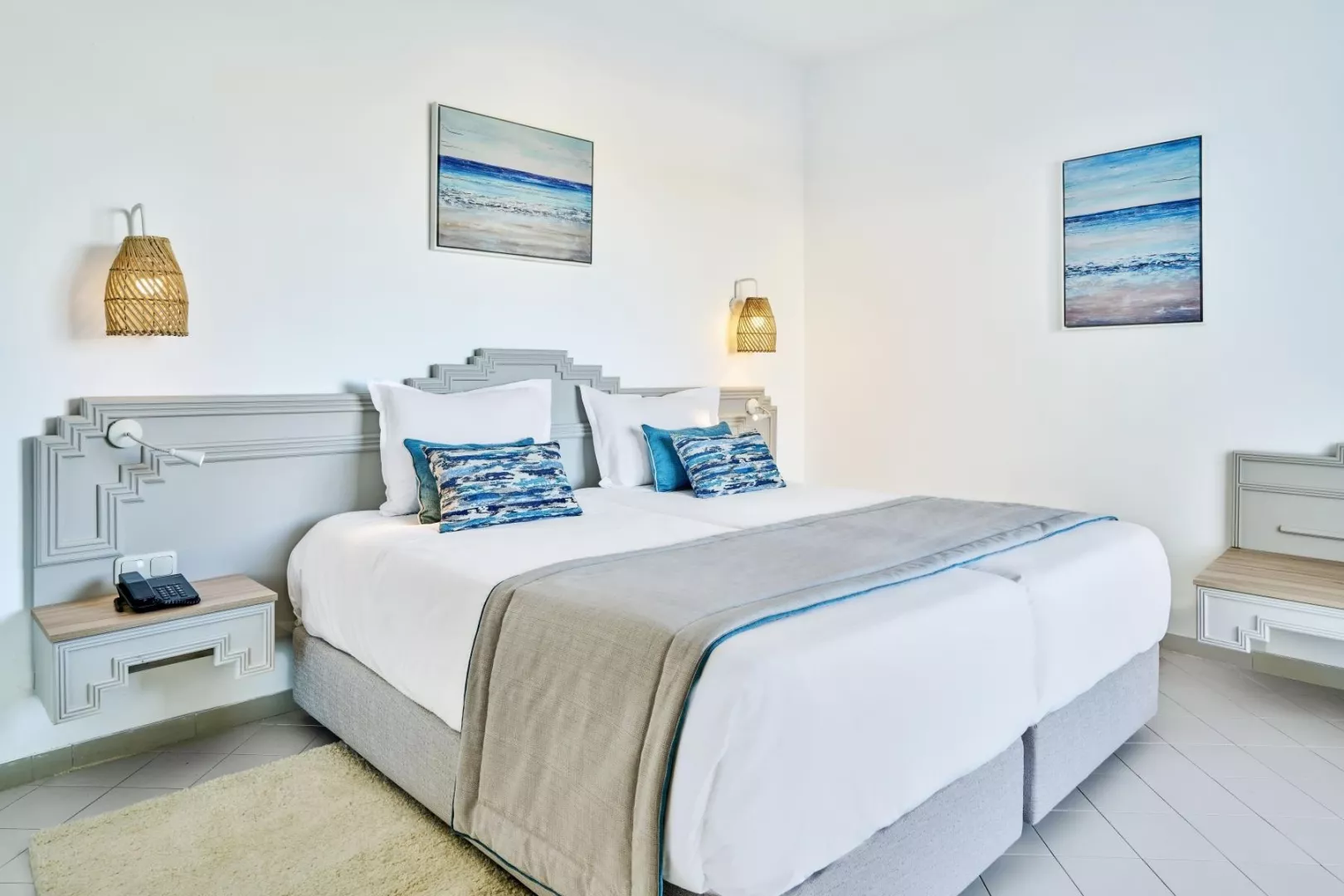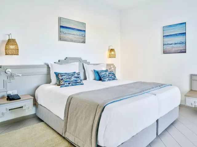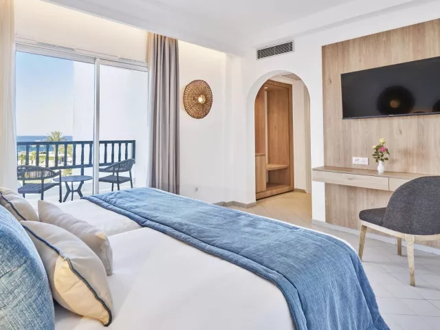 Izby sú zariadené v modernom štýle a sú vybavené klimatizáciou (v hlavnej sezóne), telefónom, TV so satelitným príjmom, minibarom, trezorom a vlastnou kúpeľňou. K dispozícii sú aj izby s výhľadom na more alebo bazén, ako aj rodinné izby opticky oddelené do dvoch miestností.