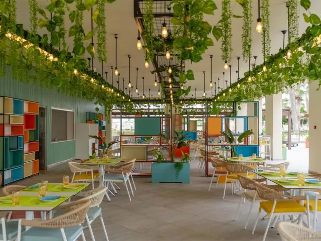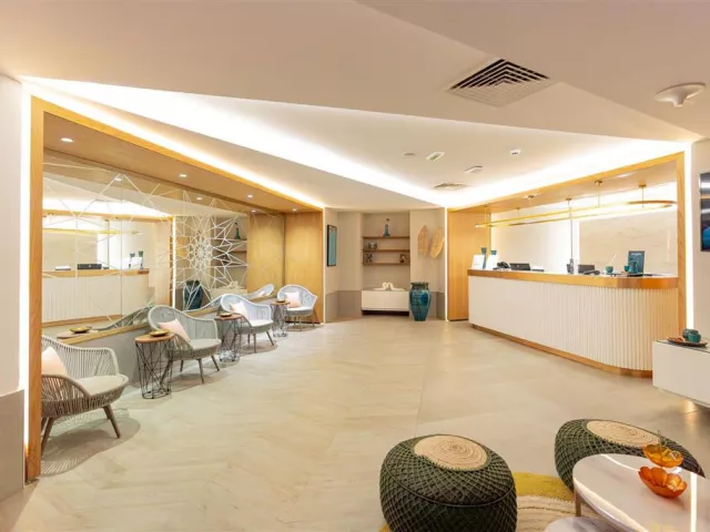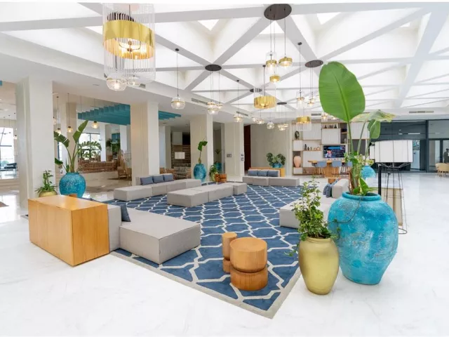 Hotel disponuje vstupnou halou s recepciou, zmenárňou, výťahmi, štyrmi reštauráciami a tromi barmi. V areáli je obchodík so suvenírmi, konferenčná miestnosť a tri veľké bazény, z ktorých jeden je so slanou vodou. Detský bazén so šmykľavkami, lehátka, slnečníky a osušky sú dostupné zadarmo.