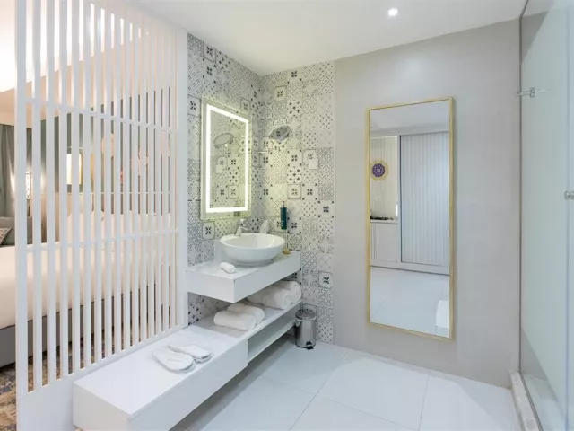 Izby sú moderne zariadené a zahŕňajú dvojlôžkové izby s možnosťou prísteliek, deluxe izby a suity. Vybavenie izieb zahŕňa kúpeľňu s WC, sušič na vlasy, klimatizáciu, set na prípravu kávy a čaju, minibar, trezor, smart TV a balkón alebo terasu.