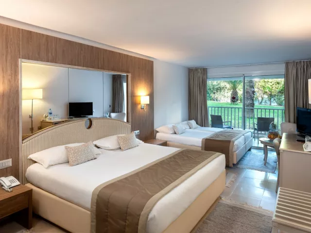 Izby hotelu sú vybavené dvojlôžkovými posteľami s možnosťou výhľadu do záhrady alebo na more. Každá izba disponuje sociálnym zariadením, fénom, klimatizáciou (v hlavnej sezóne), TV so satelitným príjmom, trezorom, minibarom a balkónom alebo terasou. Rodinné izby sú priestrannejšie.