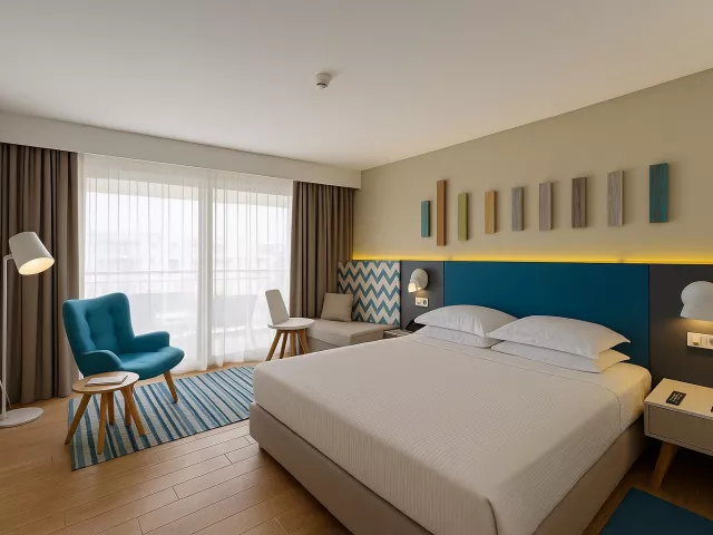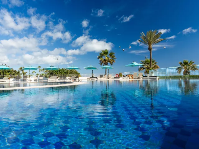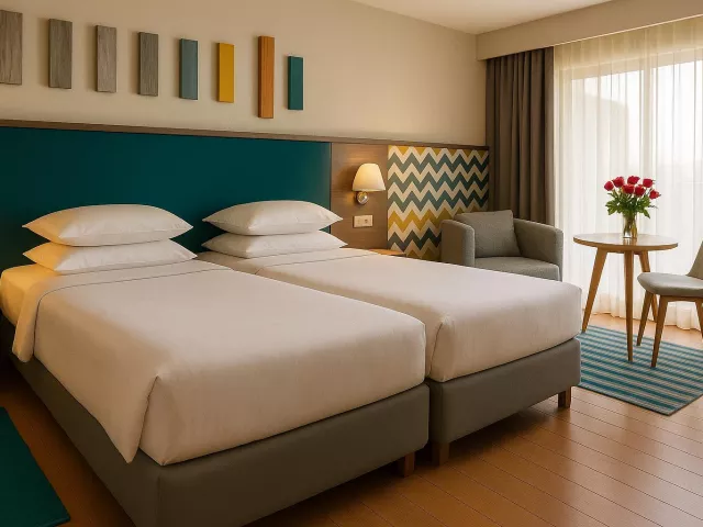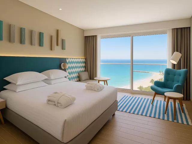 Dvojlôžkové izby sú vybavené kúpeľňou so sociálnym zariadením, fénom, klimatizáciou (v hlavnej sezóne), telefónom, TV so satelitným príjmom, trezorom (zdarma) a setom na prípravu kávy a čaju. Izby majú balkón alebo terasu a sú ponúkané aj superior izby s čiastočným výhľadom na more, rodinné izby s prepojenými izbami a suite typu Executive s obývacou časťou a čiastočným alebo plným výhľadom na more.