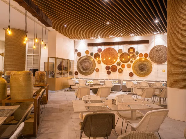 Luxusný 5* hotelový rezort ponúka široké spektrum služieb vrátane vstupnej haly s recepciou, lobby baru, hlavnej reštaurácie a reštaurácie à la carte. K dispozícii je konferenčná miestnosť a krytý bazén, ako aj členitý vonkajší bazén so slnečníkmi a lehátkami zdarma. Animačné programy sú organizované počas dňa a večera.