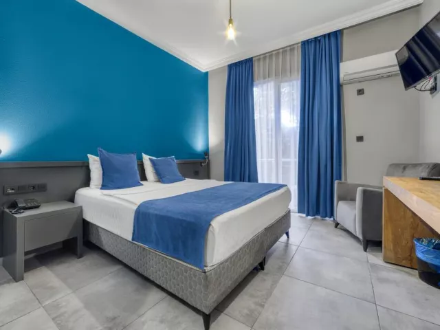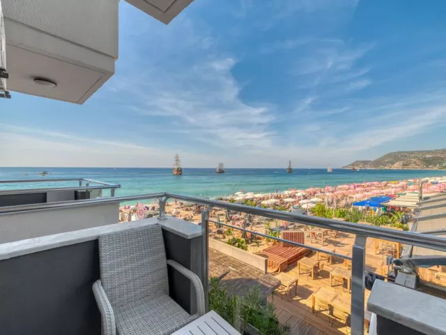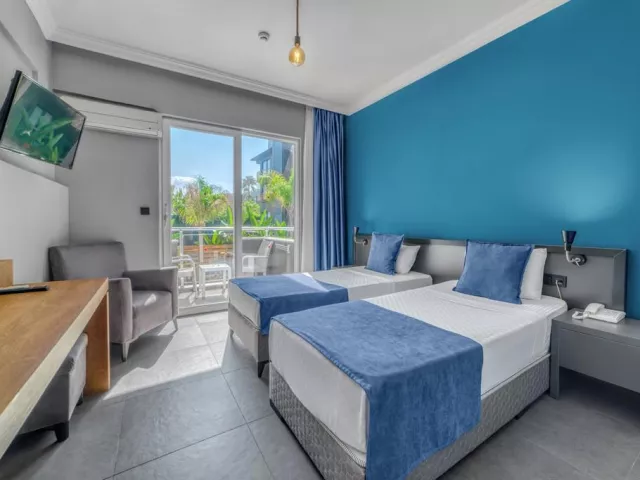 Hotel leží priamo pri slnečnej a piesočnatej Kleopatrinej pláži, kde sú slnečníky a ležadlá k dispozícii bez poplatku.