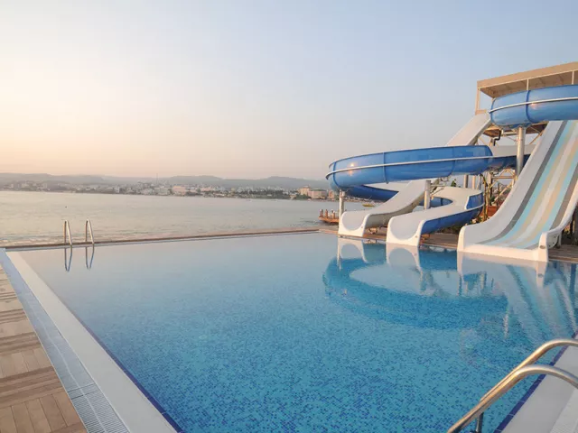 Typy izieb: dvojlôžkové izby s možnosťou jednej alebo dvoch prísteliek, dvojlôžkové izby PROMO s dvomi prístelkami (2 deti do 15 rokov extra výhodne), rodinné izby pre 3-5 osôb (s dvomi miestnosťami) a jednolôžkové izby. Izby sú vybavené: TV/SAT, telefónom, bezplatným WiFi, trezorom, klimatizáciou, minibarom (naplneným v deň príchodu bezplatne), setom na prípravu kávy a čaju, vlastným sociálnym zariadením, sušičom na vlasy a balkónom. Vybavenie hotela zahŕňa vstupnú halu s recepciou, WiFi v priestoroch hotela (zdarma), hlavnú reštauráciu, á la carte reštauráciu (1x za pobyt zdarma), lobby bar, bar pri bazéne, Fugla Cafe & Bar na móle (á la carte servis za poplatok), plážový bar, cukráreň, kaviarničku so značkovou kávou „Starbucks“, vonkajší bazén, vírivku, detský bazén, bazény s toboganmi, sauna a turecké kúpele (obe zdarma), kaderníctvo, kozmetiku a masáže (za poplatok), a posilňovňu (zdarma).