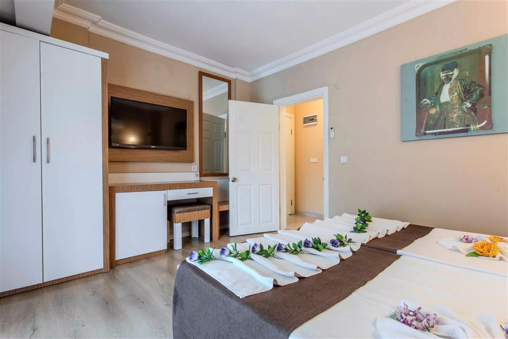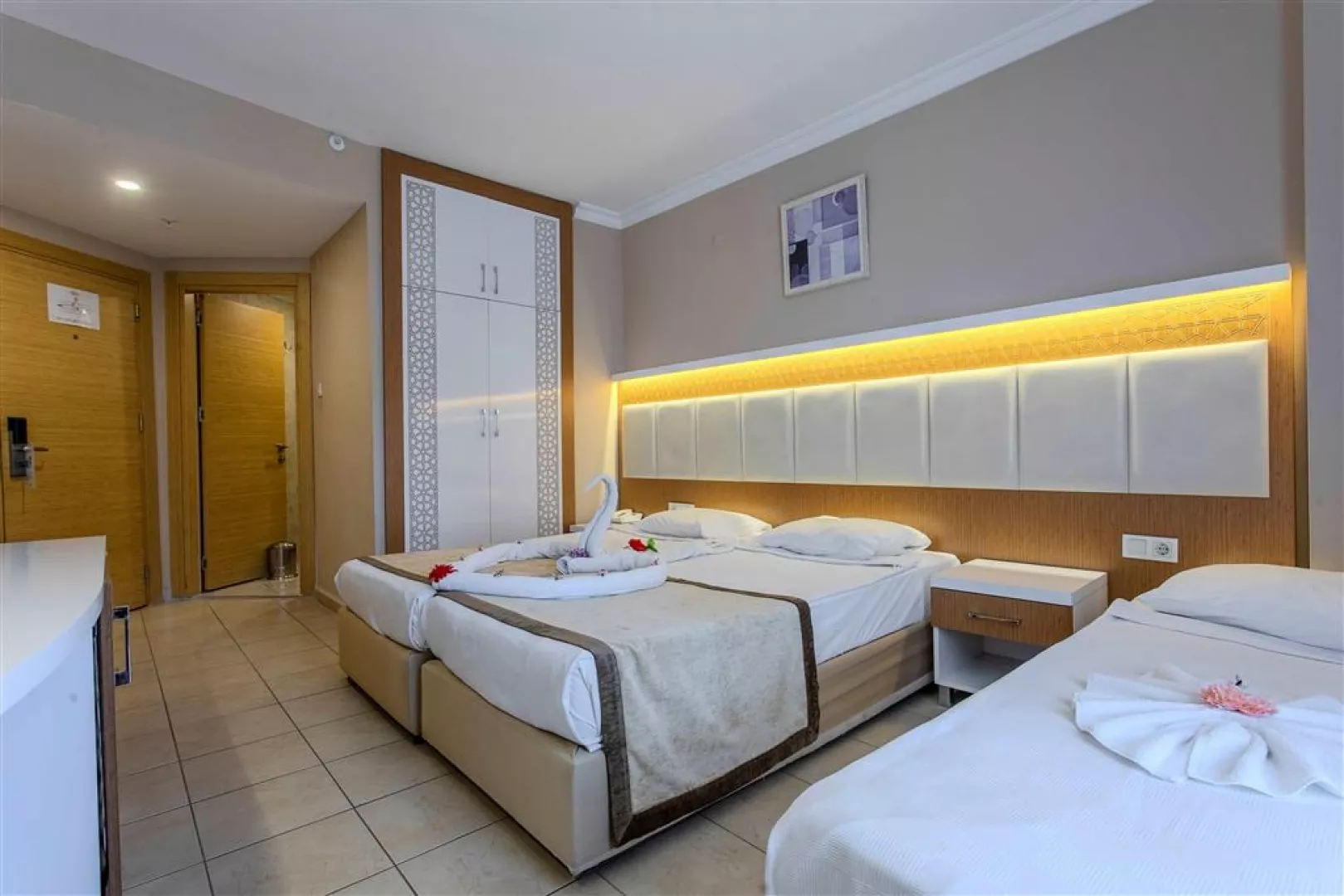 Izby sú vybavené vlastným sociálnym zariadením (sprchový kút, WC, sušič na vlasy), individuálnou klimatizáciou, SAT TV, telefónom, minibarom s balenou vodou a balkónom. Trezor je k dispozícii za poplatok. Wi-Fi na izbách je tiež za príplatok.
