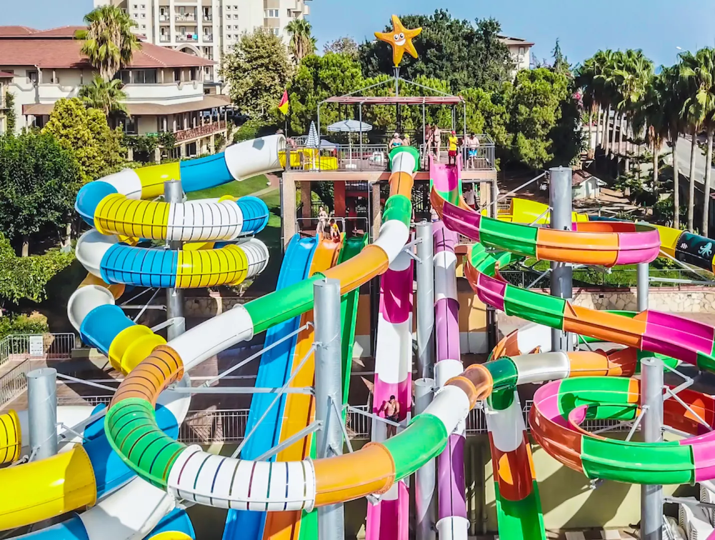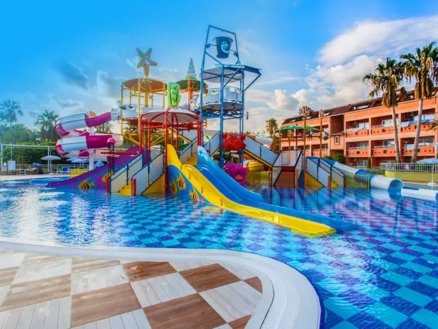 Typy izieb zahŕňajú dvojlôžkové izby s možnosťou prísteliek, rodinné izby pre 4 až 6 osôb (s dvoma miestnosťami oddelenými dverami) a jednolôžkové izby. Vybavenie izieb zahrňuje TV/SAT, telefón, klimatizáciu, minichladničku, WiFi (zdarma), trezor, set na prípravu teplých nápojov, vlastné sociálne zariadenie, sušič na vlasy a balkón. Medzi vybavenie hotela patrí recepcia, 2 hlavné reštaurácie, 1 à la carte reštaurácia (za poplatok), 14 barov, 5 vonkajších bazénov, 2 vnútorné bazény, 5 detských bazénov, vírivky, aquapark s toboganmi (zdarma) a sauna s parnou saunou (zdarma). Pre športové aktivity sú k dispozícii futbalové, basketbalové a volejbalové ihriská, detské ihrisko, stolný tenis (zdarma), biliard (za poplatok), kaderníctvo, obchody so suvenírmi, práčovňa (za poplatok).