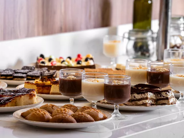 Hlavná reštaurácia s otvoreným bufetom, á la carte reštaurácia (talianska), cukráreň a snack bar ponúkajú rôzne lahodné jedlá a občerstvenie.