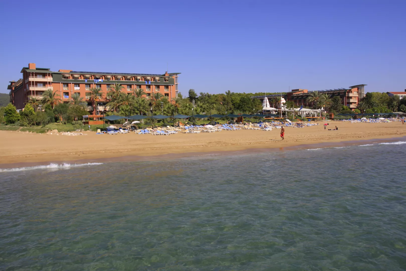 Pláž je piesočnatá a ponúka ležadlá, slnečníky a plážové osušky zadarmo, ako aj plážový bar.