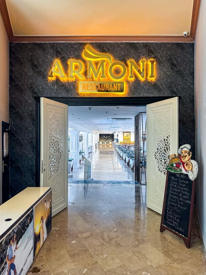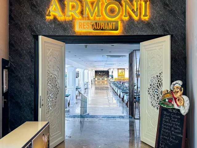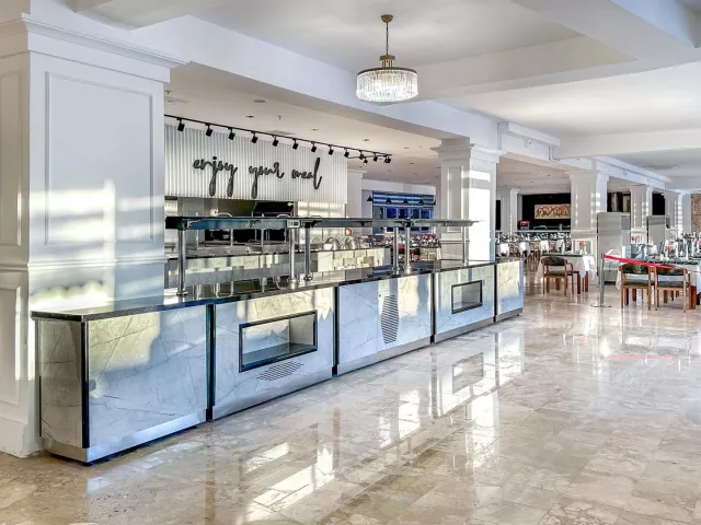 Stravovanie je formou all inclusive, ktoré zahŕňa raňajky, obedy a večere vo forme bufetu. Neskoré večere a cukrovinky sú poskytované v určených hodinách, pričom niektoré lokálne nealko a alkoholické nápoje sú zahrnuté. Čerstvá pomarančová šťava je za príplatok. Hostia, ktorí zostanú minimálne 5 dní, môžu využiť jednu bezplatnú večeru v á la carte reštaurácii (rezervácia je potrebná).