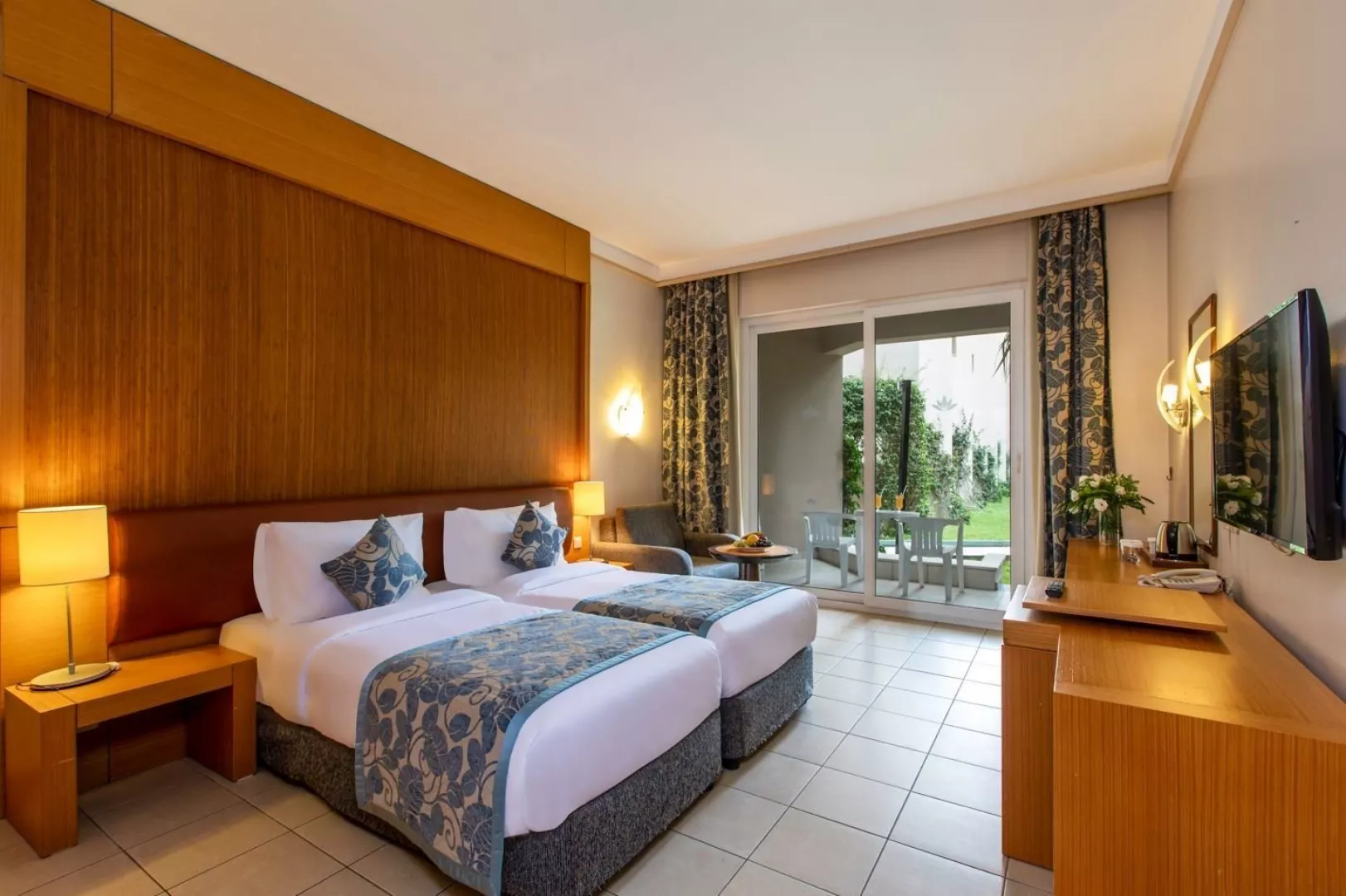 Hotel má 3 vonkajšie bazény, vrátane relaxačného bazéna, a vnútorný vyhrievaný bazén. Rôzne reštaurácie vrátane bufetovej a dvoch à la carte, bar pri bazéne a plážový bar sú dostupné pre stravovanie. K vybaveniu patrí aj SPA centrum, kde si môžete dopriať rôzne procedúry, rovnako ako aj možnosť prenájmu áut a služby práčovne.