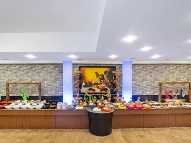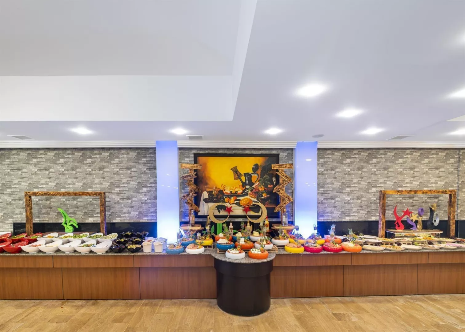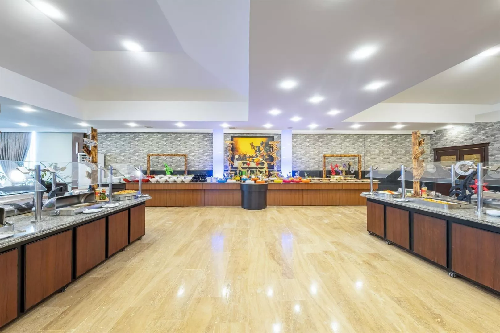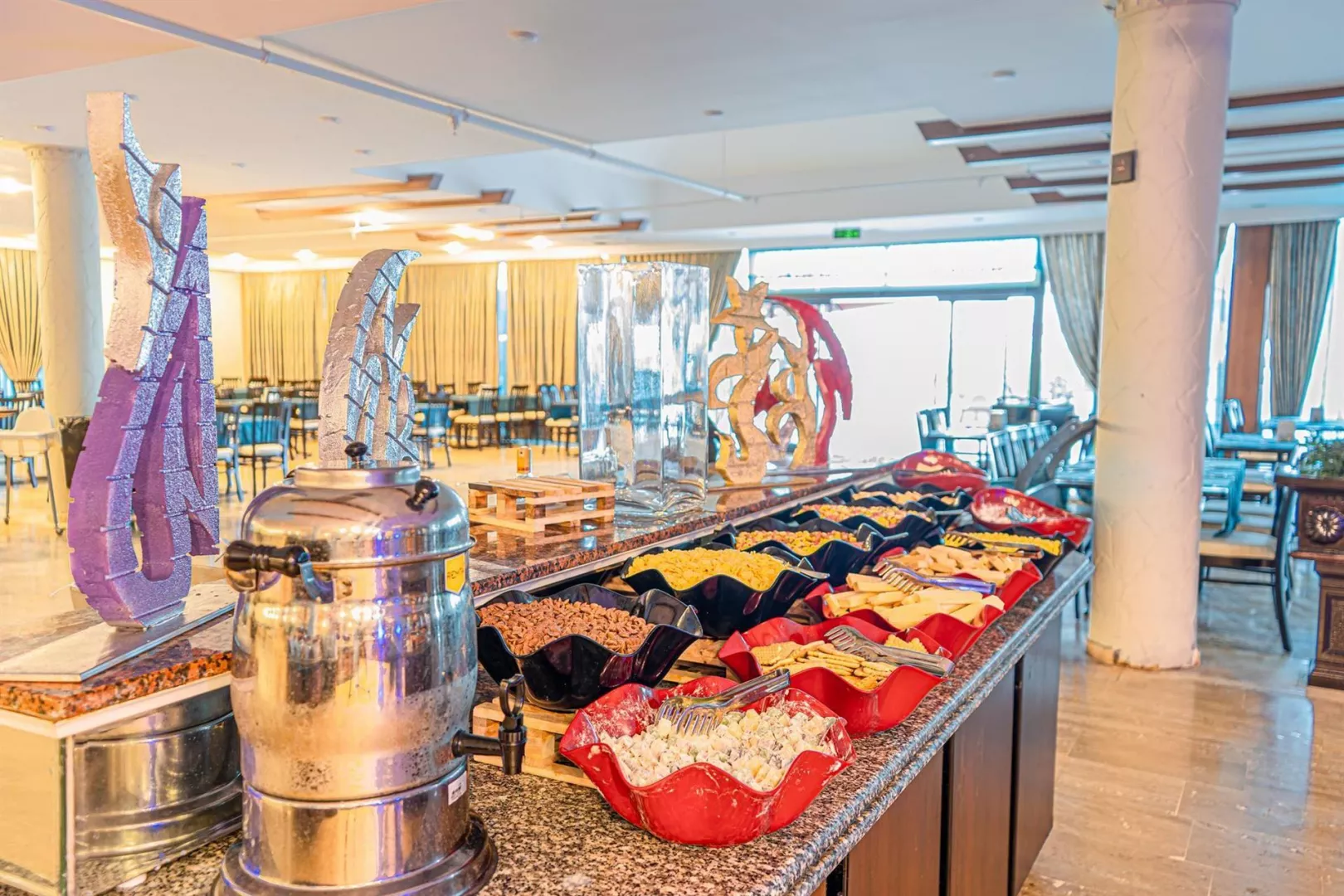 Hostia sa môžu tešiť na široký výber jedál. Raňajky sú servírované od 07:30 do 10:00, neskoré raňajky od 10:00 do 10:30, obed od 12:30 do 14:00 a večera od 19:00 do 21:00 vo forme bufetu. Disponibilné sú tiež občerstvenia, pečivo, dezerty a turecká káva, a to v rôznych časoch počas dňa.