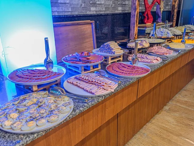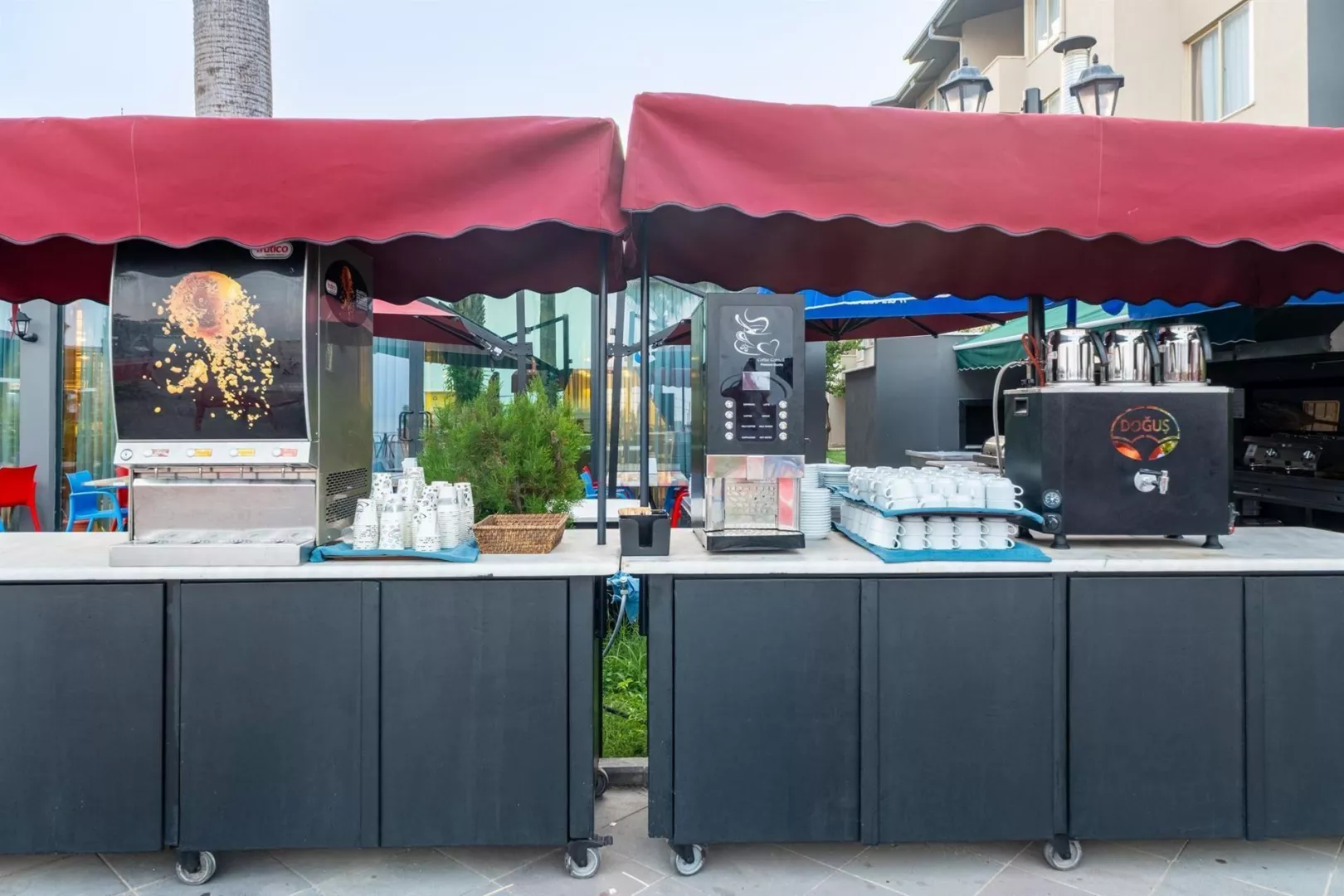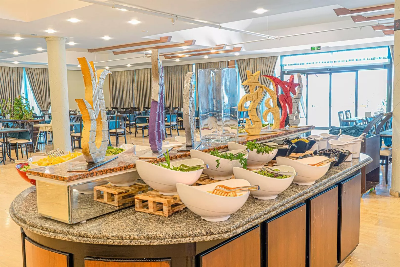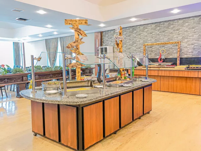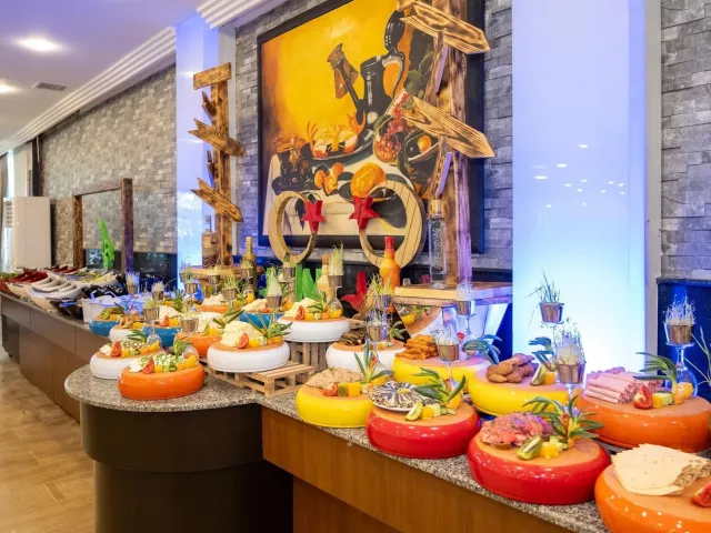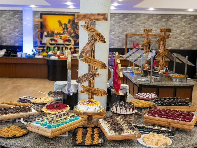 Hostia sa môžu tešiť na široký výber jedál. Raňajky sú servírované od 07:30 do 10:00, neskoré raňajky od 10:00 do 10:30, obed od 12:30 do 14:00 a večera od 19:00 do 21:00 vo forme bufetu. Disponibilné sú tiež občerstvenia, pečivo, dezerty a turecká káva, a to v rôznych časoch počas dňa.