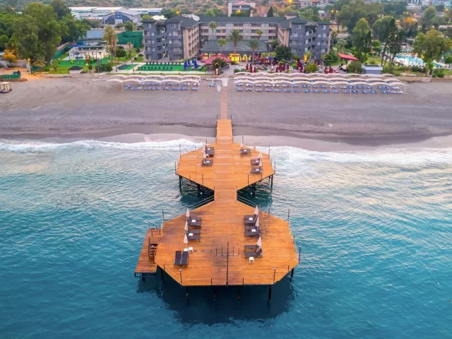 Hotel disponuje súkromnou piesočnato-kamienkovou plážou, kde sú ležadlá, slnečníky a plážové osušky k dispozícii bez poplatku. Mólo tiež patrí k plážovým vybaveniam.