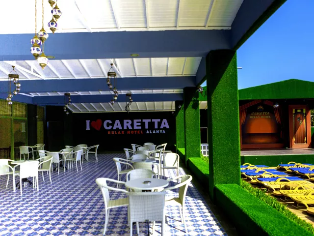 Caretta Relax je sesterský hotel obľúbeného hotela Caretta Beach, pozostávajúci z dvoch moderných päťposchodových budov s výťahmi. Hotel ponúka 299 izieb, vstupnú halu s recepciou, 4 výťahy, hlavnú reštauráciu, 3 bary, konferenčnú miestnosť, kaderníctvo a minimarket. Klientom sú k dispozícii animačné programy, diskotéka a turecký večer. WiFi pripojenie je k dispozícii za poplatok v lobby.