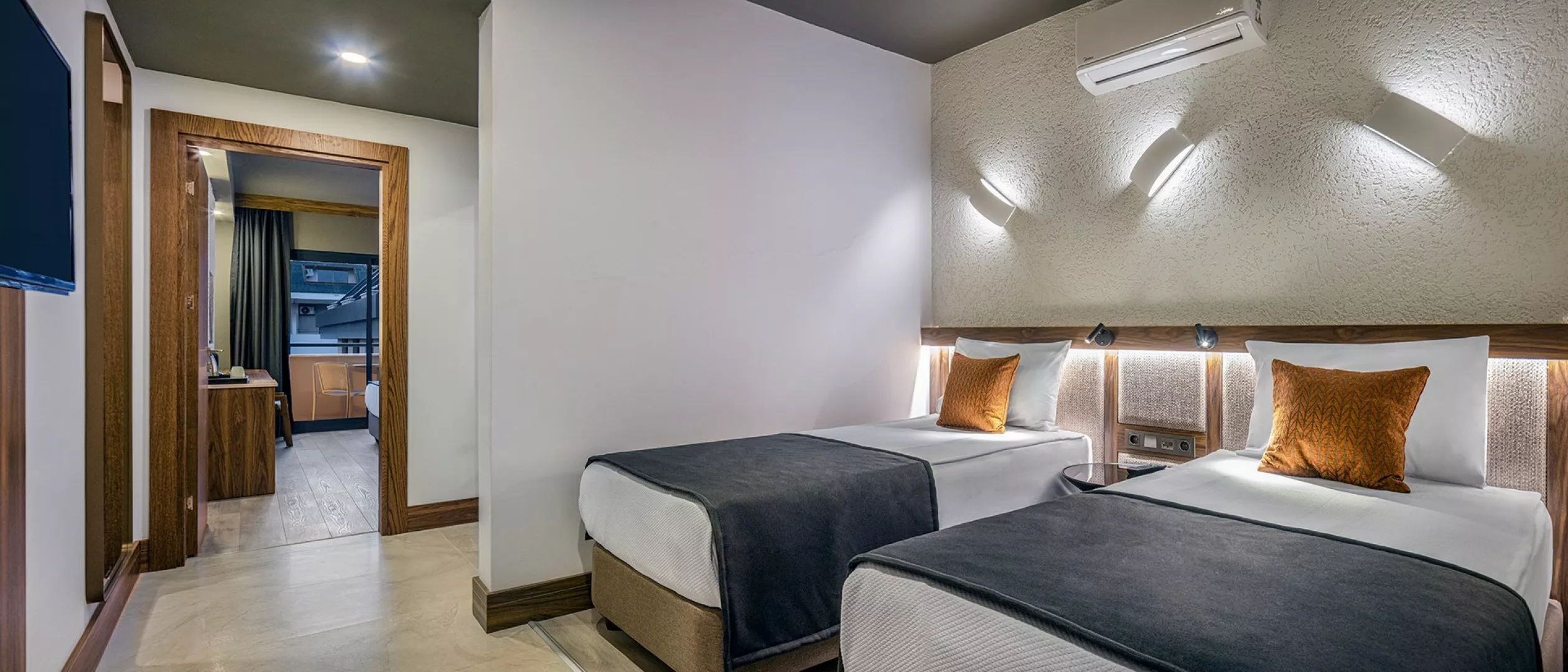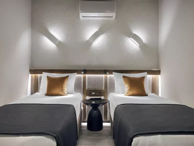Dvojlôžková izba je vybavená klimatizáciou, TV so satelitným príjmom, telefónom, Wi-Fi (zadarmo), minibarom (denne dopĺňaný vodou), trezorom (za poplatok), kúpeľňou/WC (so sušičom vlasov) a balkónom. K dispozícii sú aj rôzne typy izieb: