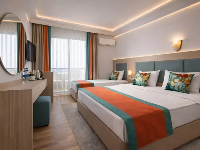 Celkom 345 izieb, vstupná hala s recepciou, hlavná reštaurácia, 3 A la Carte reštaurácie (Turecká, Talianska, Čínska - 1 z nich za pobyt s rezerváciou zadarmo), snack bar pri bazéne, ulička s rýchlym občerstvením, patisserie, 4 bary (bar pri bazéne, bar na pláži, lobby bar, Life bar), hlavný bazén, detský bazén, bazén so šmykľavkami, lehátka, slnečníky a osušky pri bazéne zdarma, konferenčná miestnosť, služby práčovne (za poplatok), herňa (za poplatok), služby kaderníka (za poplatok), nákupná arkáda (market, optika, oblečenie a šperky), služby lekára alebo zdravotnej sestry (za poplatok).
