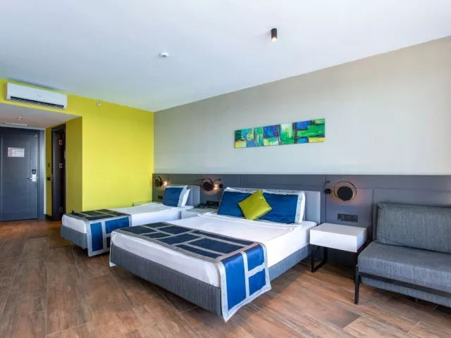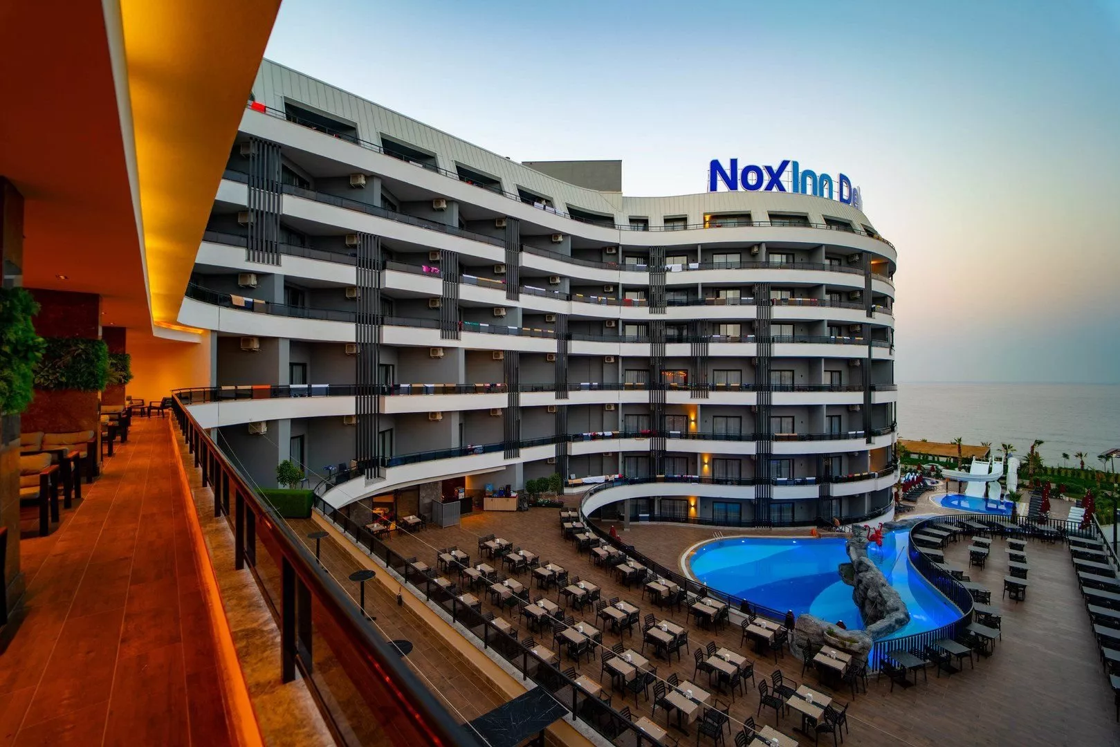 Hotel Noxinn Deluxe, situovaný v malebnej lokalite pri mori, medzi zelenými kopcami, je ideálnym miestom pre tých, ktorí sa chcú nechať uniesť prázdninovým šialenstvom. V areáli hotela sa nachádzajú bazény so šmýkačkami, široká ponuka športových aktivít a večerné show, ktoré sa postarajú o zábavu. Na relaxáciu sú k dispozícii relaxačné bazény a spa centrum s vírivkou a krytým bazénom.