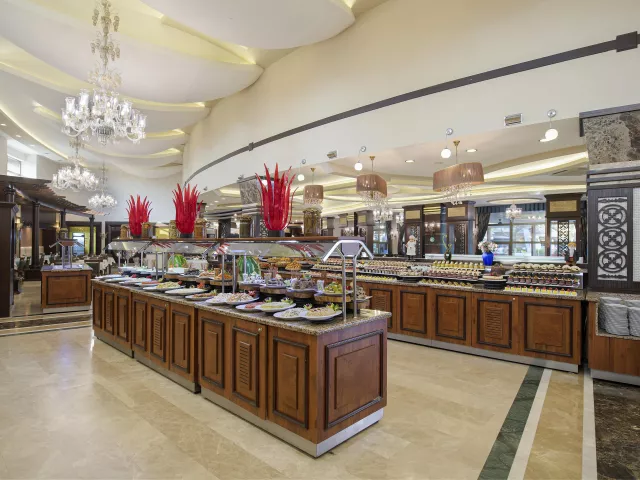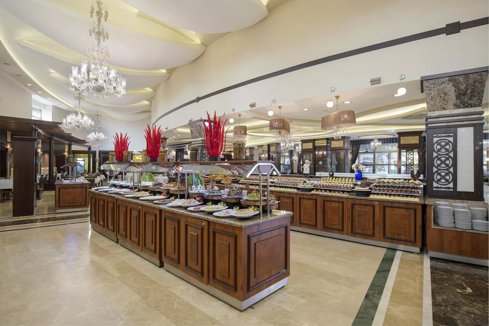Hotel ponúka koncept ultra all inclusive (UAI), ktorý zahŕňa raňajky, obedy a večere vo forme bufetu, neskoré raňajky, občerstvenie, dezerty, nočnú polievku a rôzne diétne menu. Á la Carte reštaurácie sú k dispozícii s jednou bezplatnou návštevou týždenne (na základe rezervácie). Niektoré alkoholické a nealkoholické nápoje sú dostupné za poplatok.