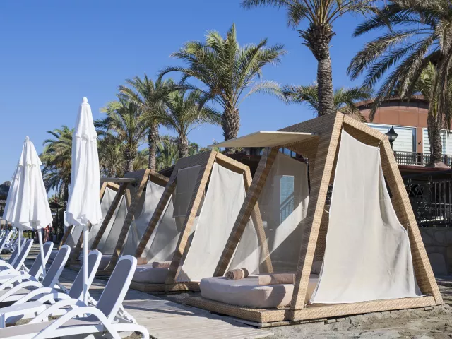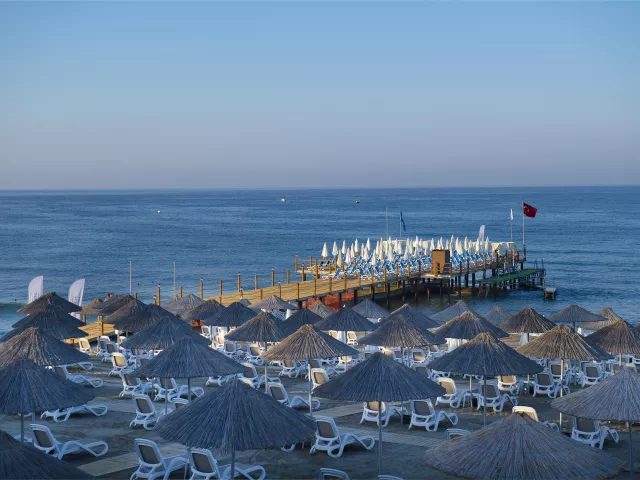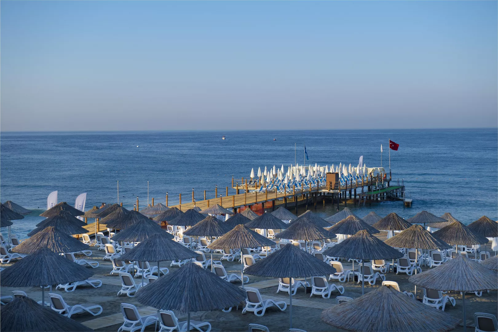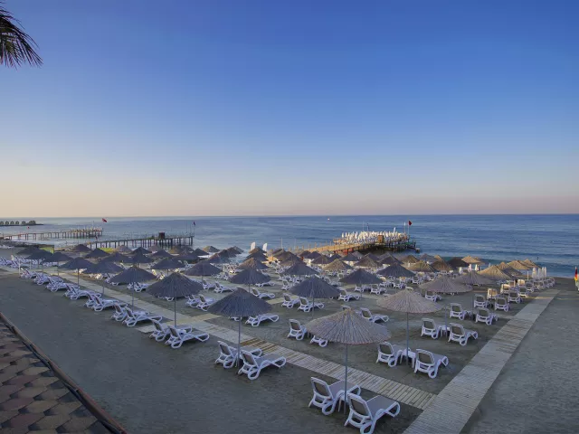 Hotel má vlastnú pieskovo-kamienkovú pláž s dĺžkou 100 m. K dispozícii sú ležadlá, slnečníky a plážové osušky bez poplatku. Plážový bar, reštaurácia, sprchy a kabínky na prezliekanie sú tiež súčasťou vybavenia. Vstup do mora je piesočnatý a kamenistý. Plážové pavilóny sú dostupné za príplatok.