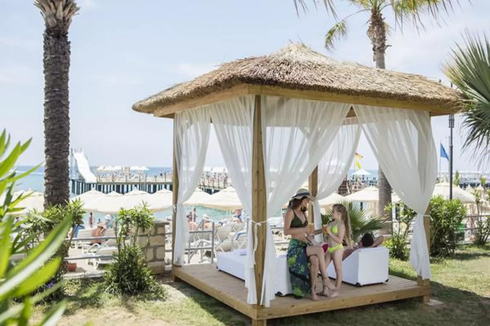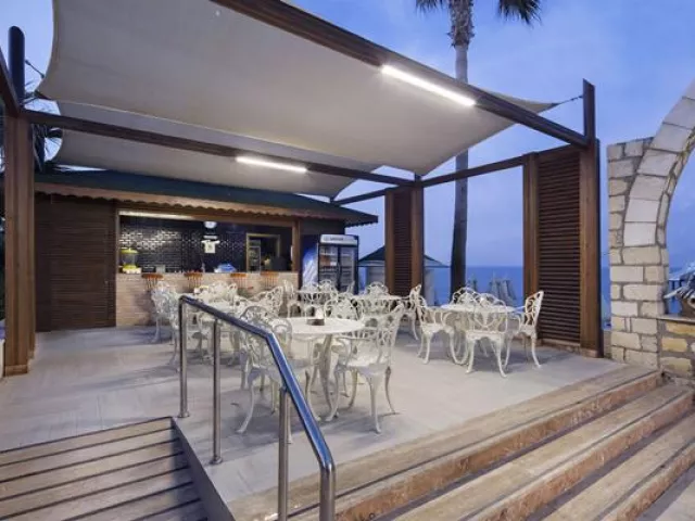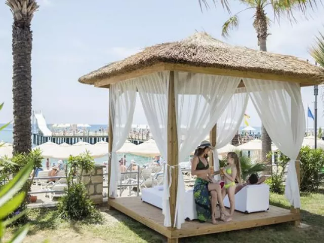 Hotel má priamy prístup na piesočnato-okruhliakovú pláž, ktorá je ocenená Modrou vlajkou. Pláž ponúka lehátka, slnečníky a osušky zdarma. K dispozícii sú aj vodné športy a šmýkačky na móle.