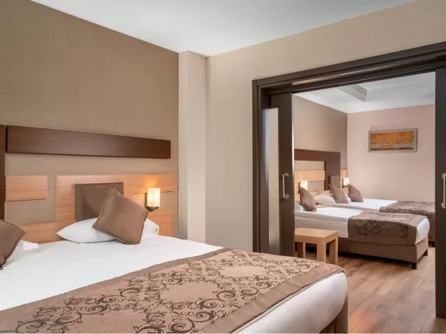 Izby sú moderné a komfortné, vybavené individuálne ovládateľnou klimatizáciou, telefónom, televíziou so satelitným príjmom, minibarom (denne dopĺňaným vodou), vlastným sociálnym zariadením, trezorom (za poplatok) a Wi-Fi (zadarmo). Možnosti izieb zahŕňajú štandardné izby, rodinné izby a priestrannejšie varianty s bočným výhľadom na more.