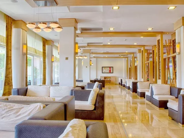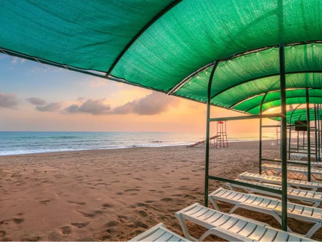 Prístup na hotelovú piesočnato-kamienkovú pláž je bezproblémový a nachádza sa len 150 m od hotela. K dispozícii sú ležadlá a slnečníky zdarma, zatiaľ čo matrace sú za poplatok. Plážový bar poskytuje príjemné osvieženie.