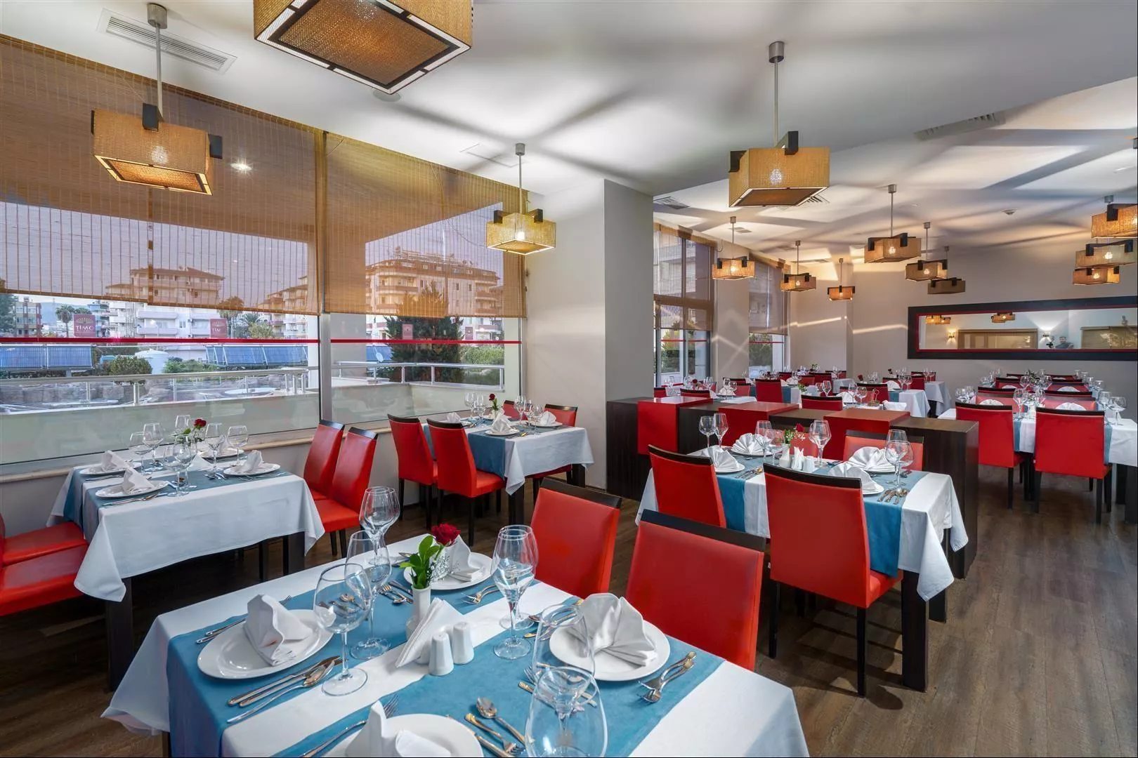 Hotel má 251 izieb, ktoré sú vybavené centrálne riadenou klimatizáciou (funguje podľa poveternostných podmienok), minibarom (nealkoholické nápoje v deň príchodu, následne iba voda), satelitnou TV, priamym telefónom, bezplatným Wi-Fi, kúpeľňou s doplnkami, fénom a trezorom (za poplatok). Izby sú denne upratované, posteľná bielizeň je menená dvakrát týždenne a uteráky trikrát týždenne. Eco, Promo a Club izby môžu mať nevýhodnejšiu polohu alebo veľkosť, a nie všetky majú balkón.
