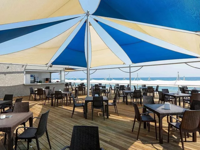 Hotel sa môže pochváliť súkromnou piesočnato-kamienkovou plážou, ku ktorej je prístup cez podzemnú chodbu. Na pláži sú k dispozícii slnečníky, ležadlá a plážové osušky bez poplatku.