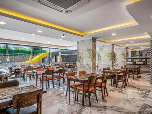 Koncept „all inclusive“ zahŕňa raňajky, obedy a večere formou bufetu, miestne alkoholické a nealkoholické nápoje v čase od 10:00 do 23:00. Detailný rozpis stravovania je poskytnutý na recepcii hotela.