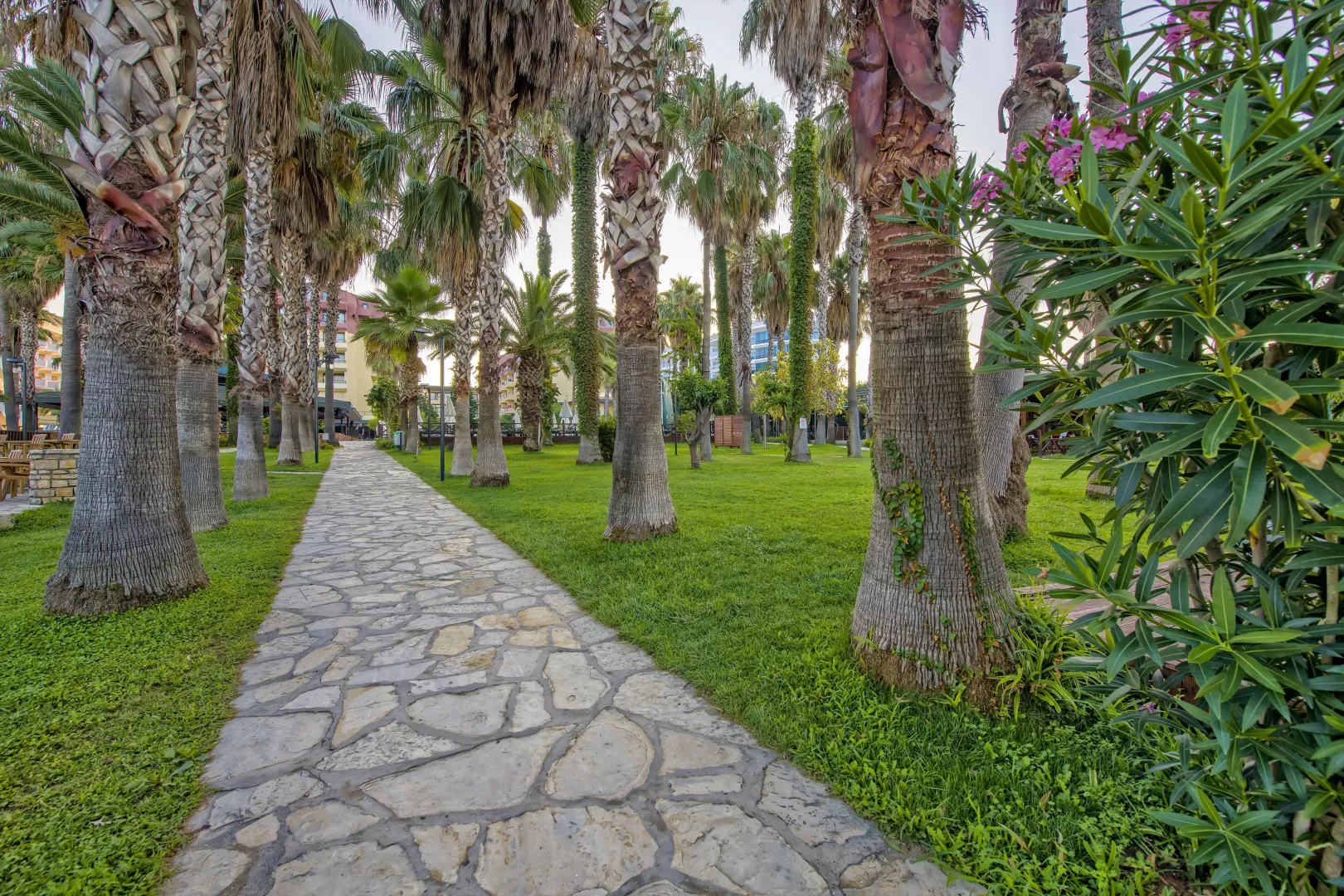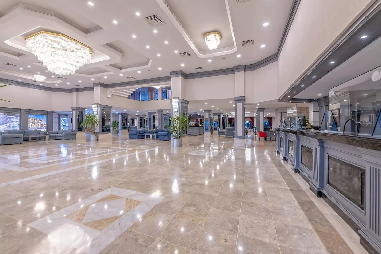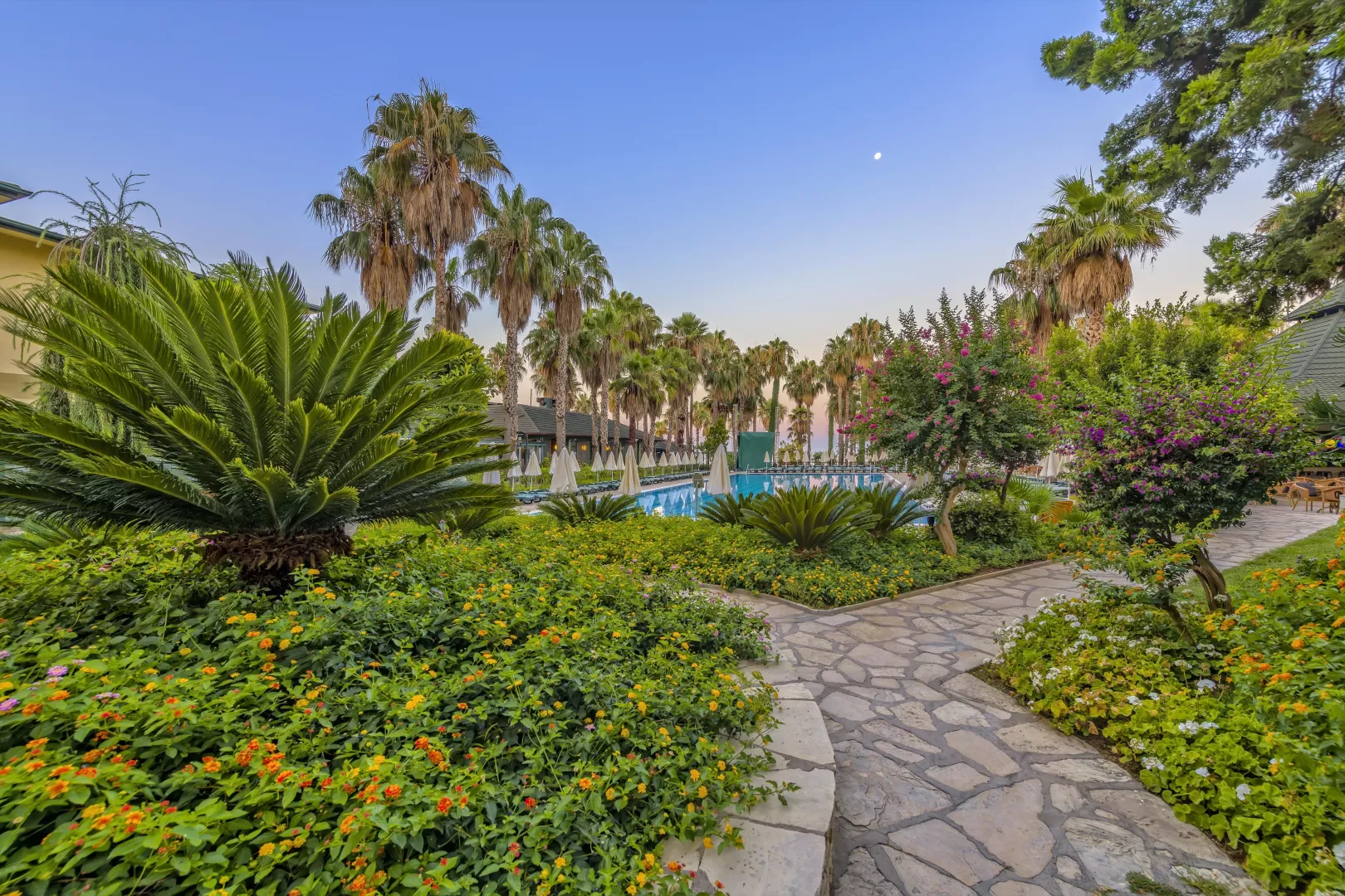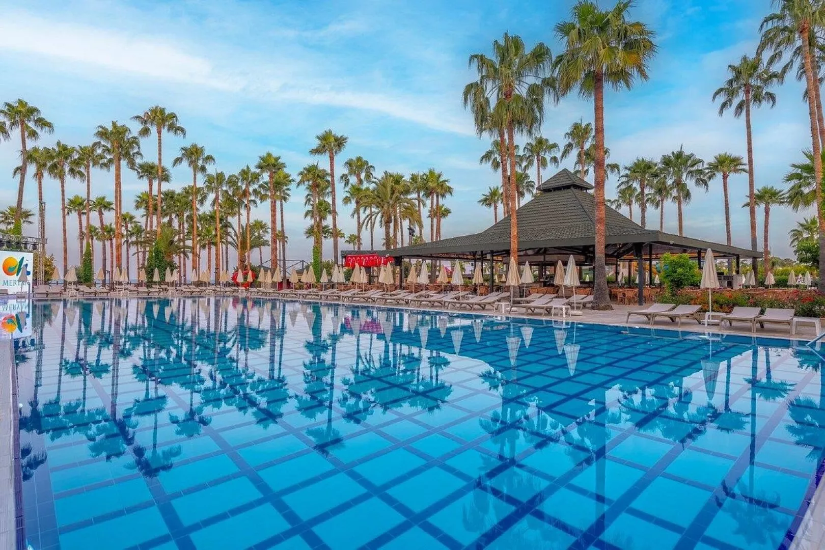 Hotel disponuje vstupnou halou s recepciou, reštauráciou, niekoľkými barmi, kaviarňou, kaderníctvom a malou obchodnou arkádou. V rámci areálu sa nachádzajú dva vonkajšie bazény, detský bazén a bazén so šmykľavkami (otvorené od 10:00 do 12:00 a od 15:00 do 17:00). Ležadlá, slnečníky a osušky sú k dispozícii zdarma, pričom výmena osušiek je za príplatok. V hoteli prebiehajú denné a večerné animačné programy.