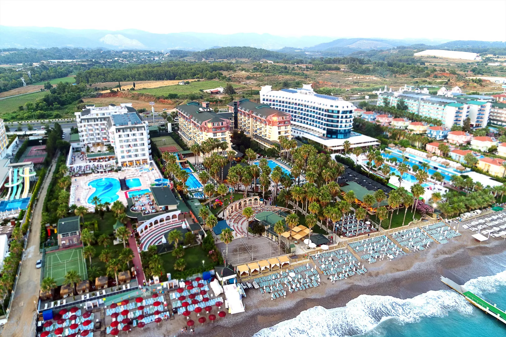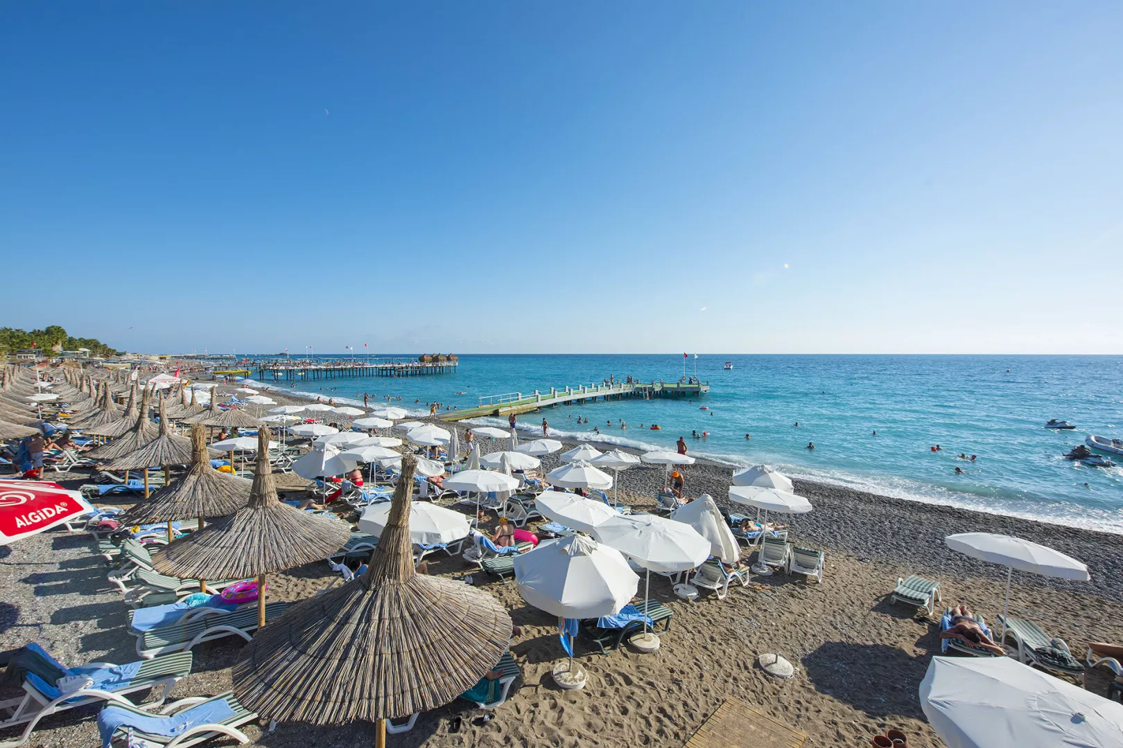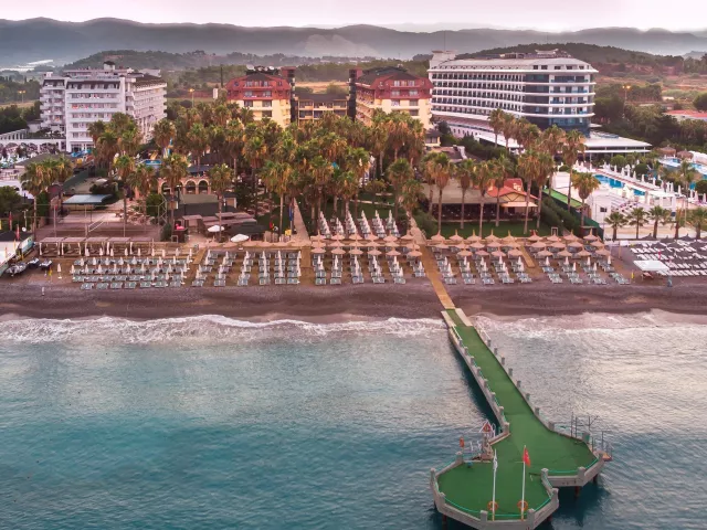 Hotel Meryan sa nachádza priamo pri pláži, v hotelovej zóne, cca 25 km od Side, 35 km od Alanye a približne 90 km od letiska v Antalyi. Nákupné možnosti sú vzdialené asi 1,5 km od hotela a pravidelné spojenia zabezpečuje dolmuš (minibusy).