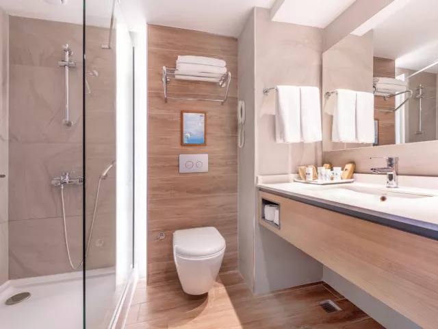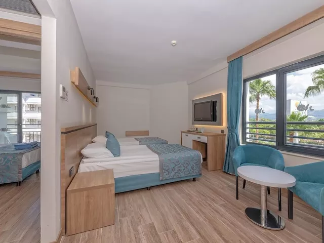 Hotel ponúka 370 izieb vrátane štandardných izieb s bočným výhľadom na more, rodinných izieb s oddelenými spálňami a bezbariérových izieb. Vybavenie izieb zahŕňa klimatizáciu, TV, minibar (dopĺňaný denne nealko nápojmi a pivom), trezor (za poplatok), balkón a sušič na vlasy.