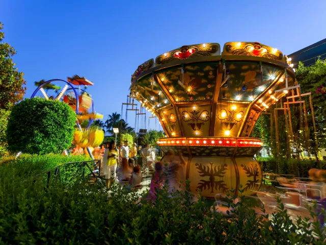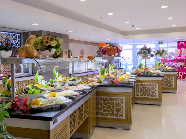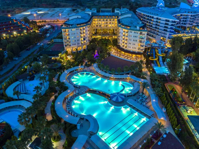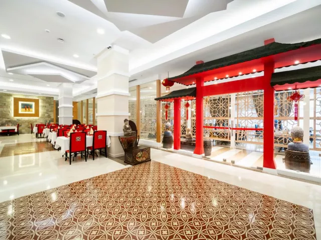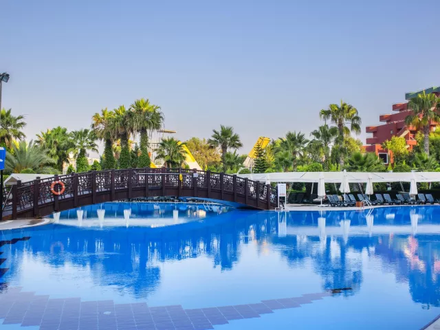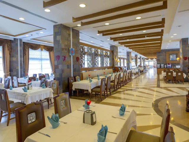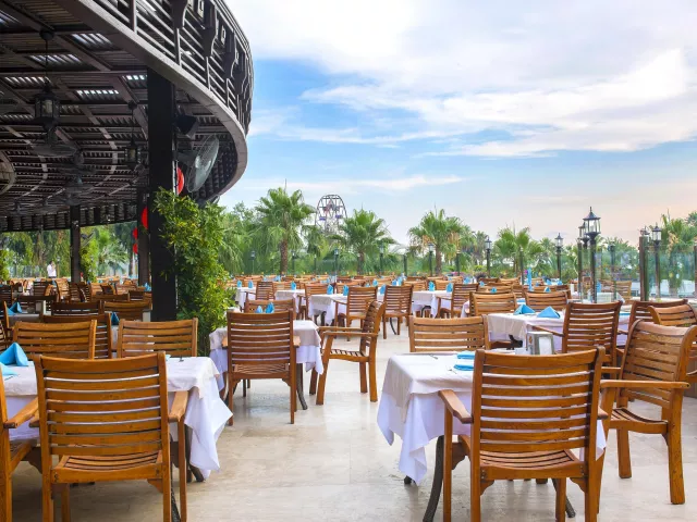 Hotel ponúka vstupnú halu s recepciou, výťahy, hlavné reštaurácie, tri à la carte reštaurácie (talianska, rybia a sushi), kaviareň a niekoľko barov. V areáli sa nachádzajú dva bazény, z ktorých jeden je so šmykľavkami, a terasa na slnenie s lehátkami a slnečníkmi k dispozícii zdarma.