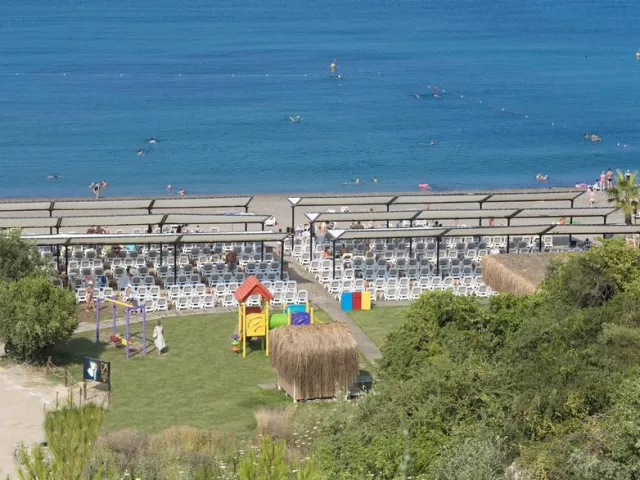 Vlastná piesočnatá pláž s kamienkovým vstupom do mora sa nachádza 500 m od hotela, s bezplatnou kyvadlovou dopravou. Na pláži je poskytovaný plážový servis vrátane slnečníkov a ležadlami.
