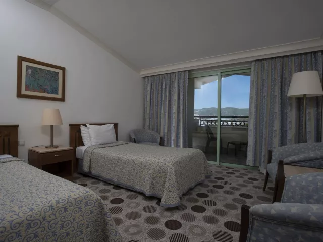 Hotel ponúka 2-lôžkové štandardné izby s možnosťou 2 prísteliek (30m2), rodinné izby (40m2) a všetky sú vybavené klimatizáciou, TV, minibarom, telefónom, sprchou, kúpeľnými doplnkami a balkónom. WiFi a trezor sú za poplatok.