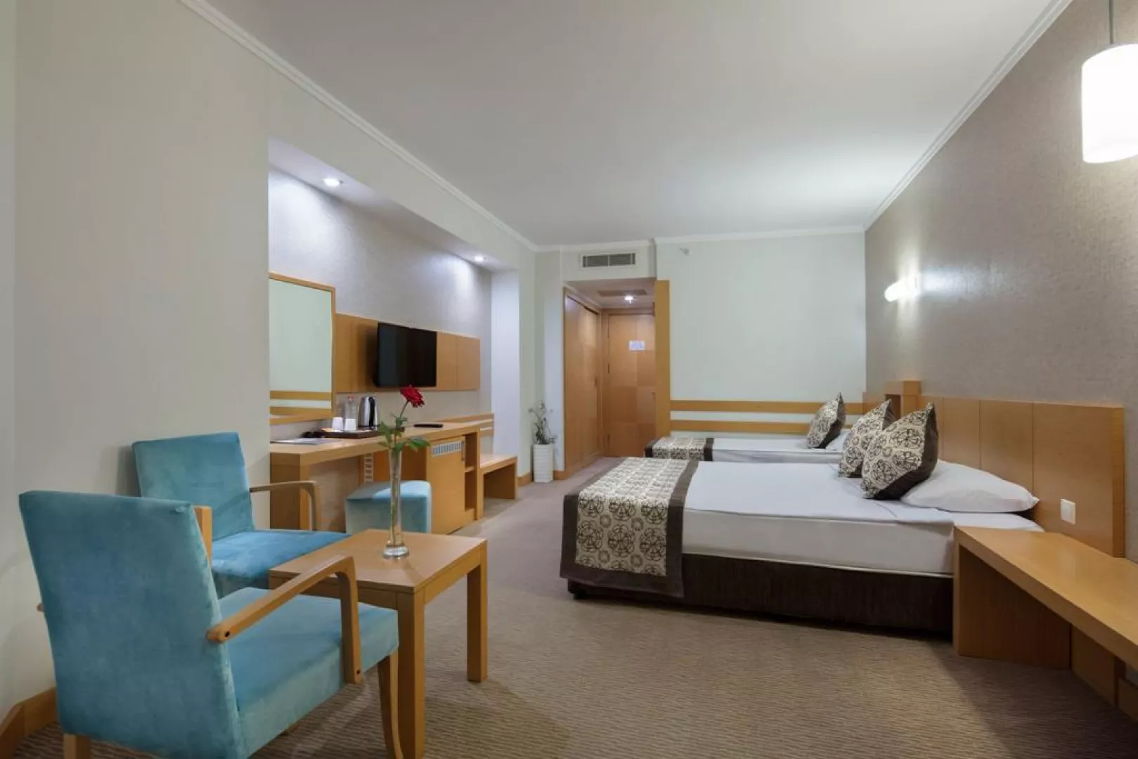 Izby sú vybavené centrálnou klimatizáciou, WiFi pripojením, TV, telefónom, minibarom (dopĺňaným denne vodou), trezorom (zadarmo) a balkónom. K dispozícii sú rôzne typy izieb, vrátane dvojlôžkových, rodinných a izieb s výhľadom na more.