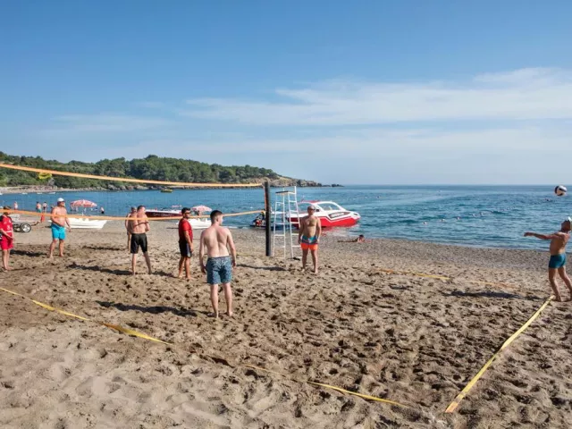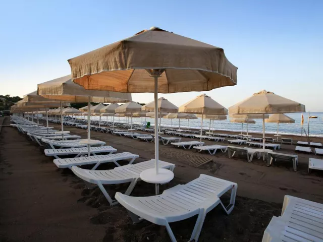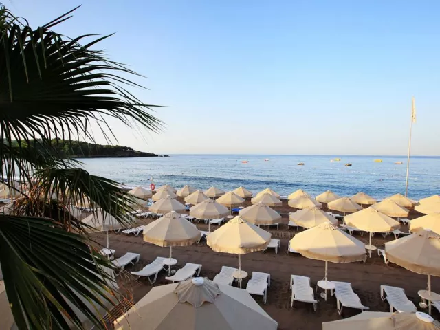 Piesočnatá pláž s kamienkovým vstupom sa nachádza priamo pred hotelom a je ocenená Modrou vlajkou. Ležadlá, slnečníky a plážové osušky sú k dispozícii zdarma, rovnako ako bar na pláži a množstvo vodných športov za poplatok.