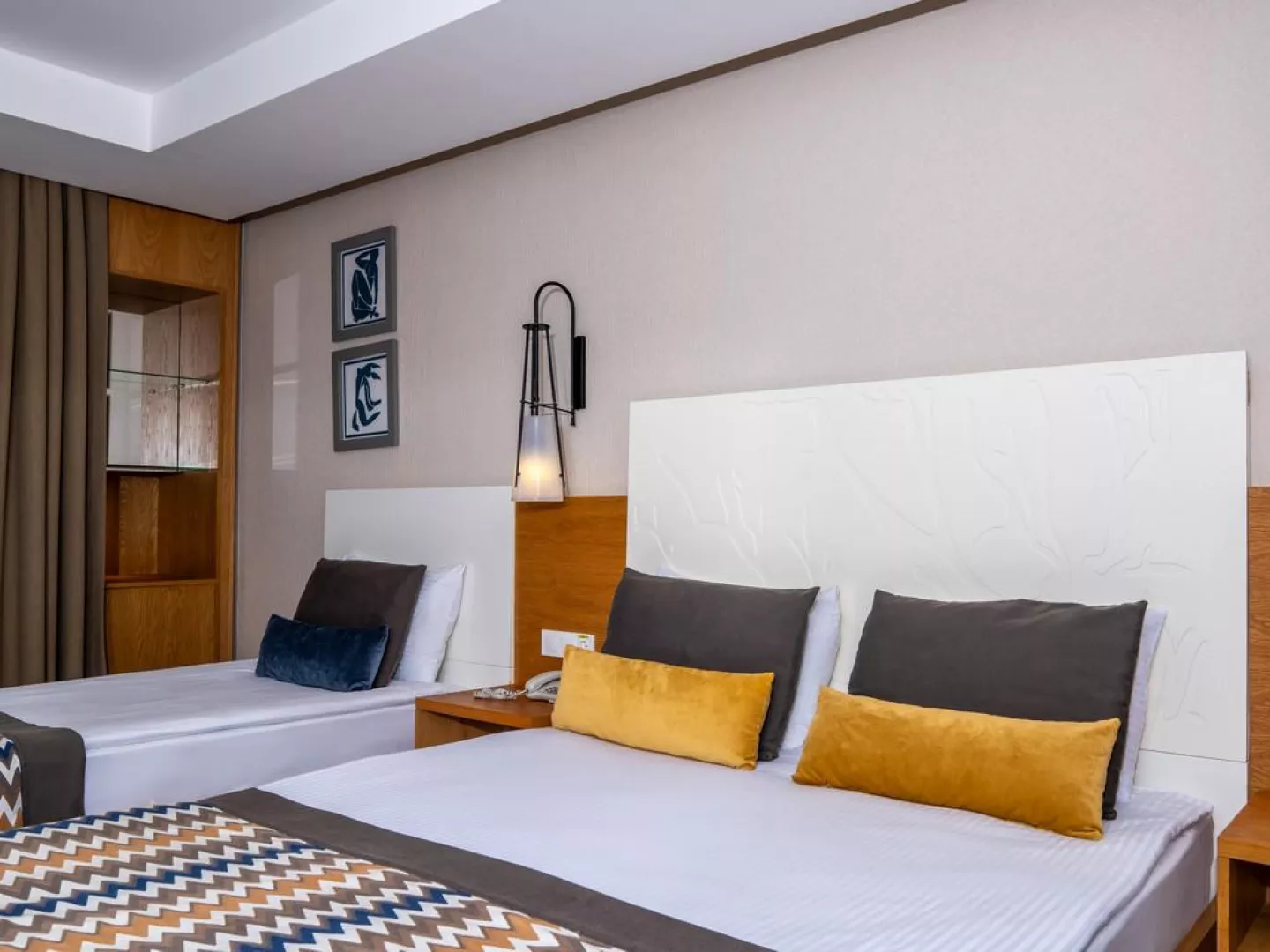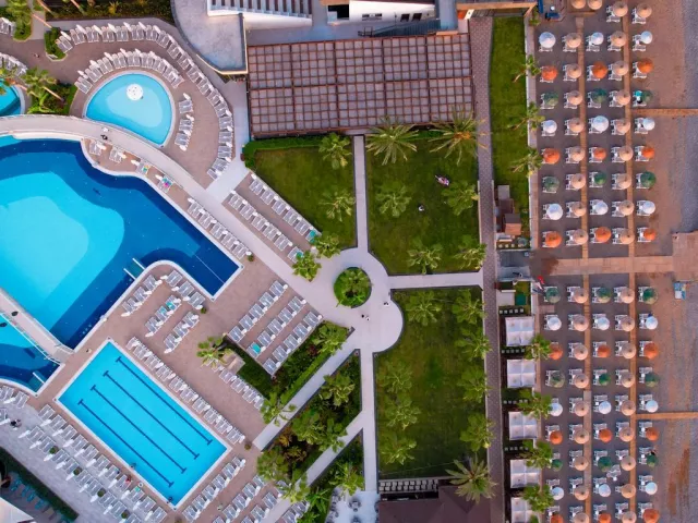 Moderné hotelové komplexy sa nachádzajú v zelenej záhrade priamo pri pieskovej pláži a ponúkajú množstvo služieb so špičkovým vybavením. Na výber je niekoľko reštaurácií vrátane 4 á la carte reštaurácií, barov, konferenčných miestností, menšieho nákupného centra, vnútorných a vonkajších bazénov, toboganov, SPA centra a detských ihrísk. Na relaxáciu sú k dispozícii lehátka a slnečníky.