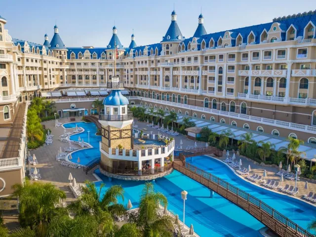 Titanic Mardan Palace 5*, Calista Luxury Resort 5*, Cullinan Belek 5*, Ela Excellence Resort 5*, Ethno Belek 5*, Maxx Royal Belek Golf Resort 5*, Regnum Carya Golf & Spa 5*, Rixos Premium Belek 5*, The Land of Legend Nickelodeon 5*, The Land of Legend Kingdom Hotel 5*.