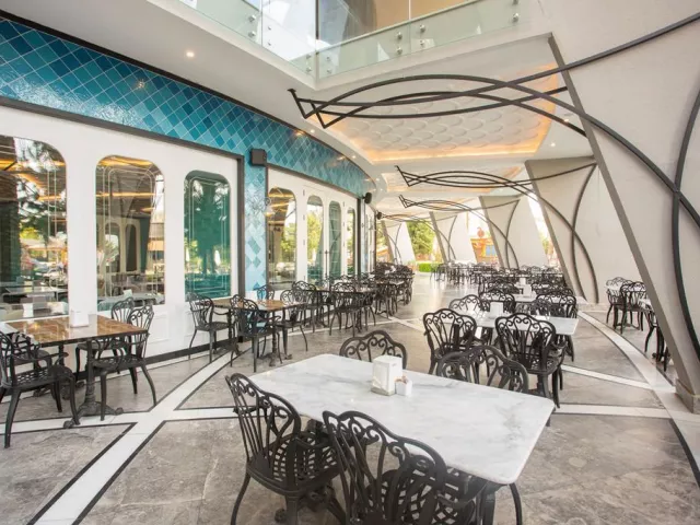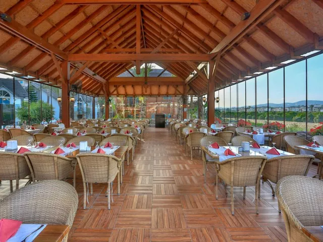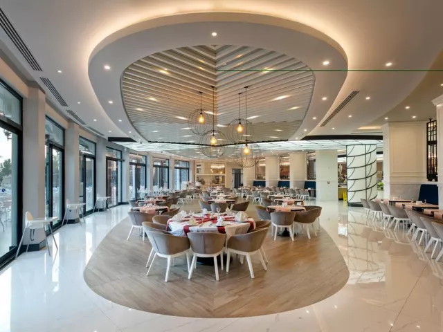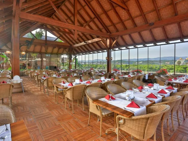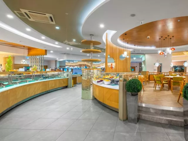 Hotel ponúka 24-hodinový ultra all inclusive program formou bufetu, vrátane rôznych jedál a občerstvenia počas celého dňa. Špeciálne bufety a tematické reštaurácie sú tiež k dispozícii, pričom rezervácia je nutná vopred pre a´ la carte reštaurácie.