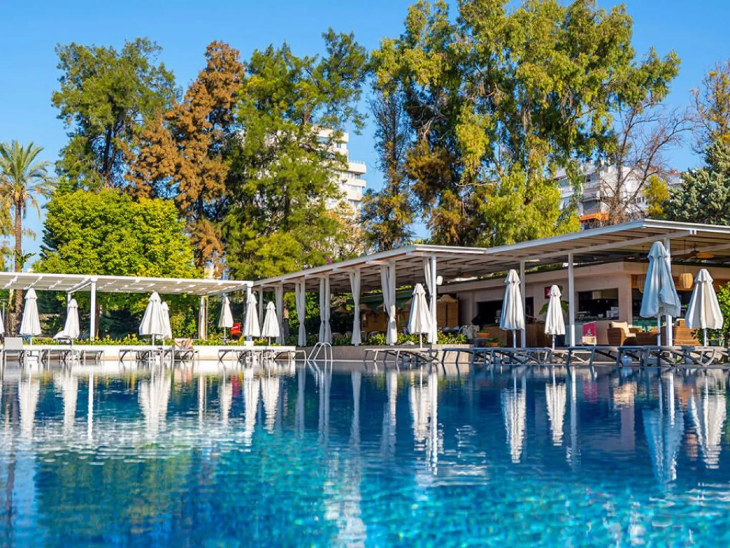 SLUŽBY: bazény so slnečníkmi a ležadlami • vnútorný bazén • hlavná reštaurácia • bary • fitness • tenisový kurt • plážový volejbal • stolný tenis • basketbal • zumba • pilates • joga • sauna • parný kúpeľ • turecký kúpeľ • parkovanie • wifi • za poplatok: SPA centrum • masáž • procedúry tureckého kúpeľa • kozmetické procedúry • obchody • kaderníctvo • lekárska služba • práčovňa • zmenáreň • osvetlenie tenisového kurtu • výbava na tenis • lekcie potápania • požičovňa áut • hracia miestnosť • konferenčná miestnosť