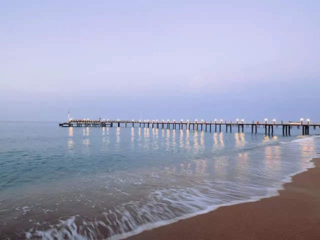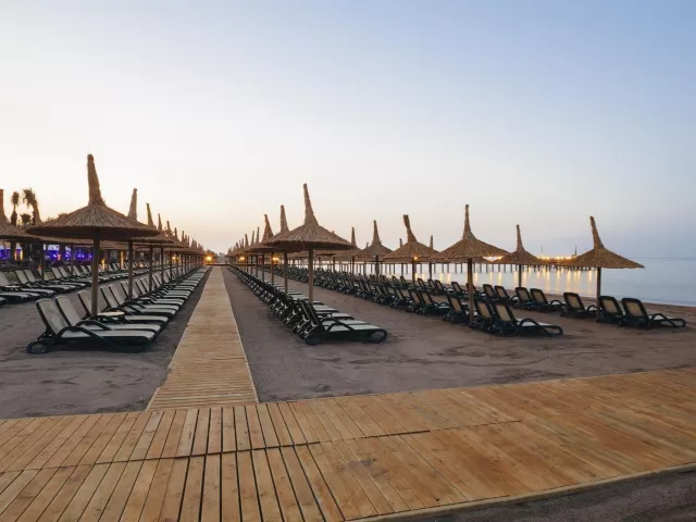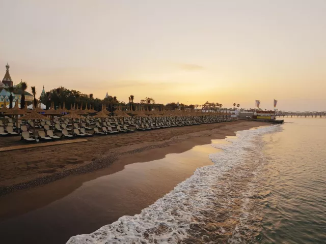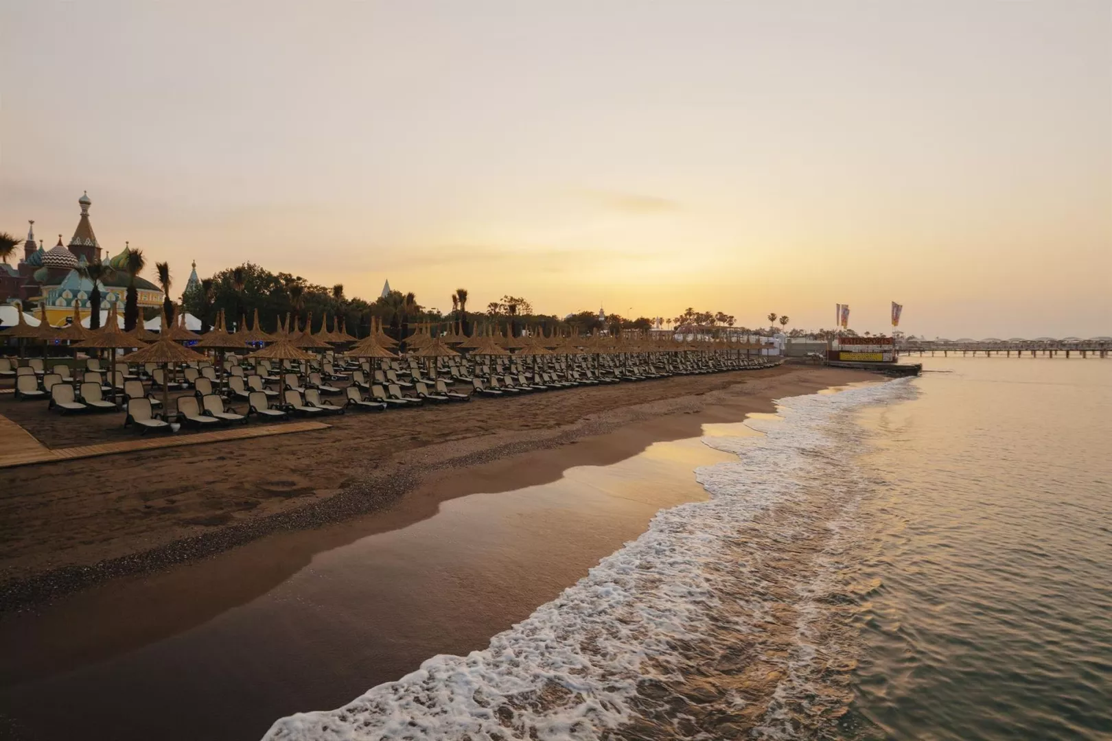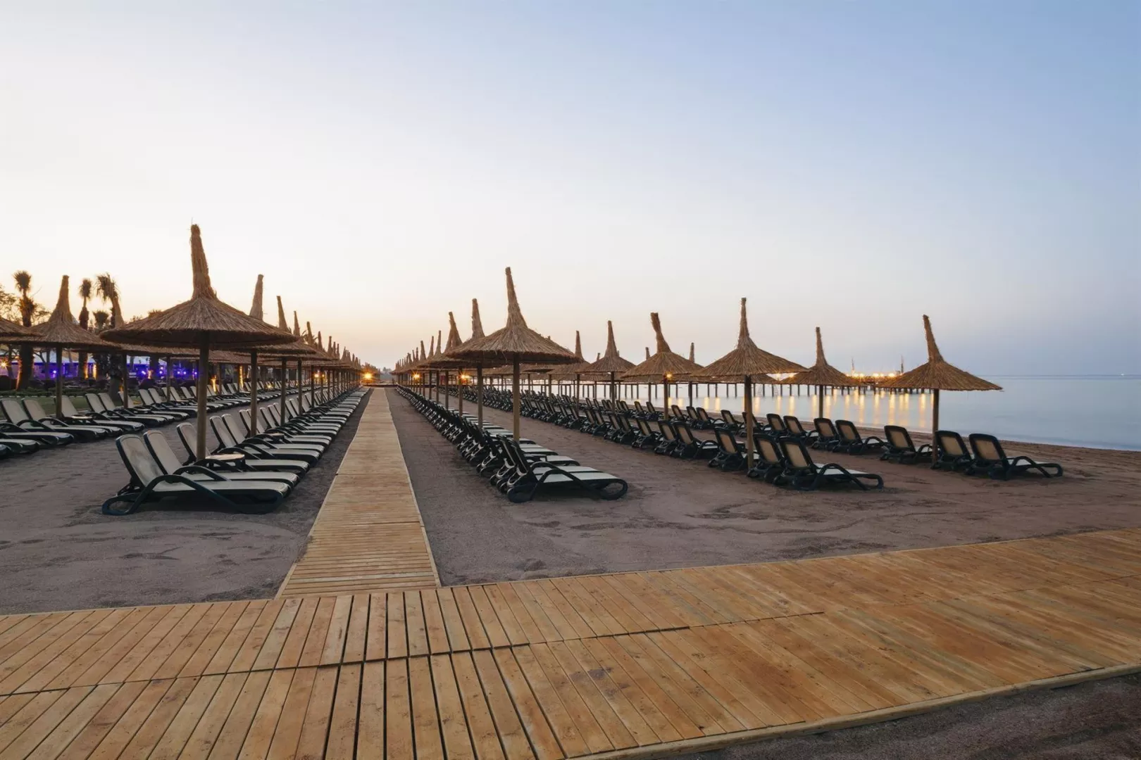 Vlastná piesočnatá pláž dlhá 200 m je vzdialená 200 m od hlavnej budovy hotela. K dispozícii sú 2 móla (s pavilónmi za poplatok) a ležadlá, slnečníky a plážové osušky bez poplatku.