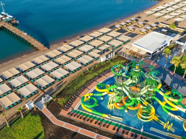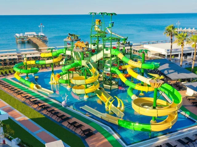 Hotel patrí medzi 5-hviezdičkové zariadenia a zahŕňa 400 izieb v hlavnej budove. Počas pobytu sú k dispozícii rôzne služby ako recepcia, hlavná reštaurácia, 3 á la carte reštaurácie (talianska, turecká, rybia), 5 snack barov, 8 barov, práčovňa, požičovňa áut a lekár. V areáli sa nachádzajú dva vonkajšie bazény, vnútorný bazén a aquapark s toboganmi. Wi-Fi je poskytovaná zdarma vo všetkých priestoroch hotela.