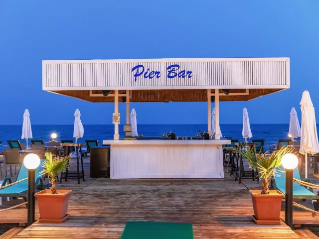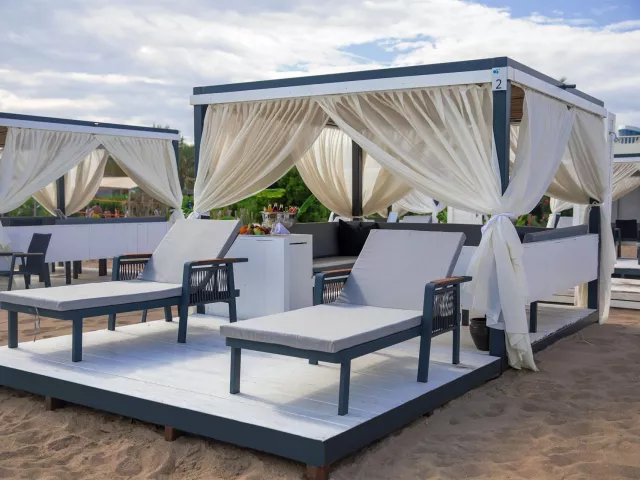 Hotel sa nachádza priamo pri piesočnatej pláži s kamienkovým vstupom do mora, kde sú k dispozícii lehátka, slnečníky a bar pri pláži zdarma.